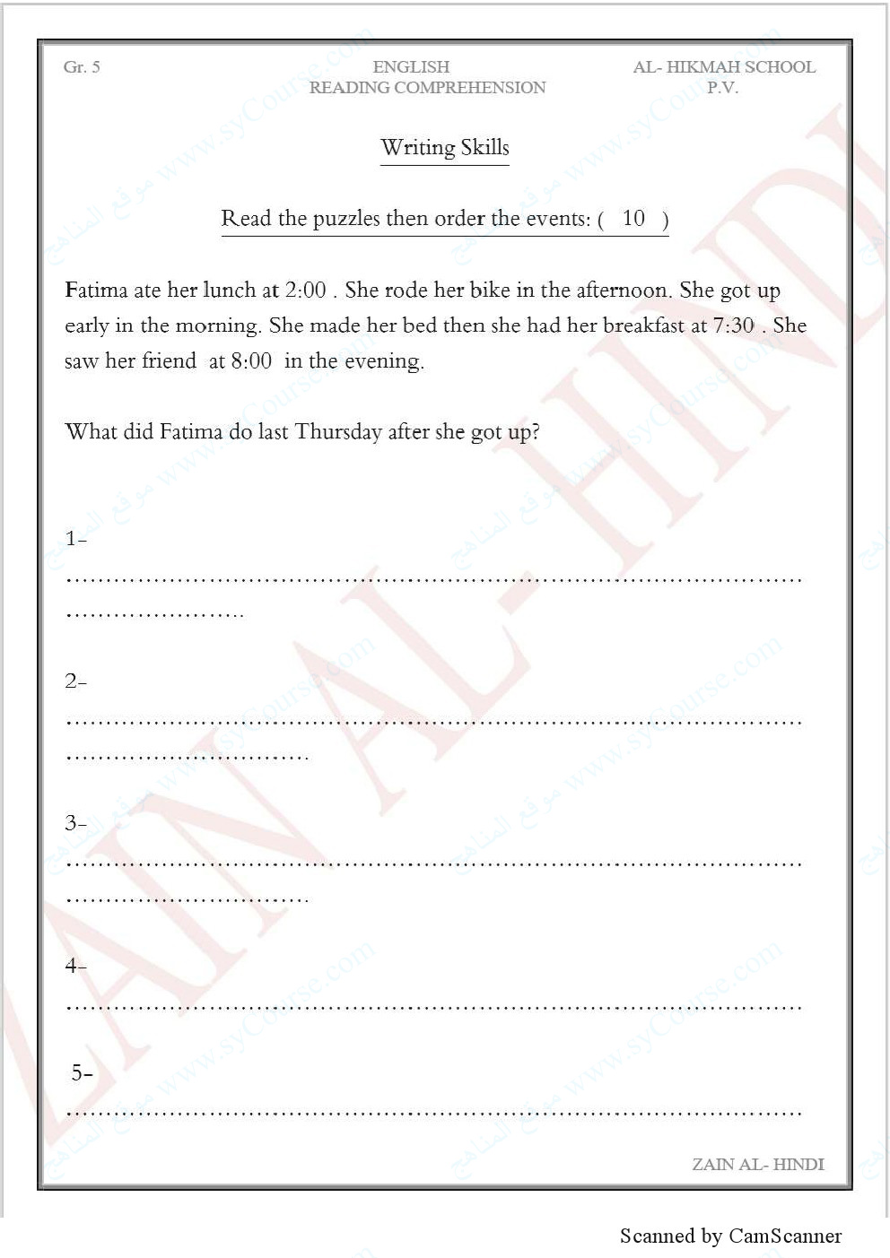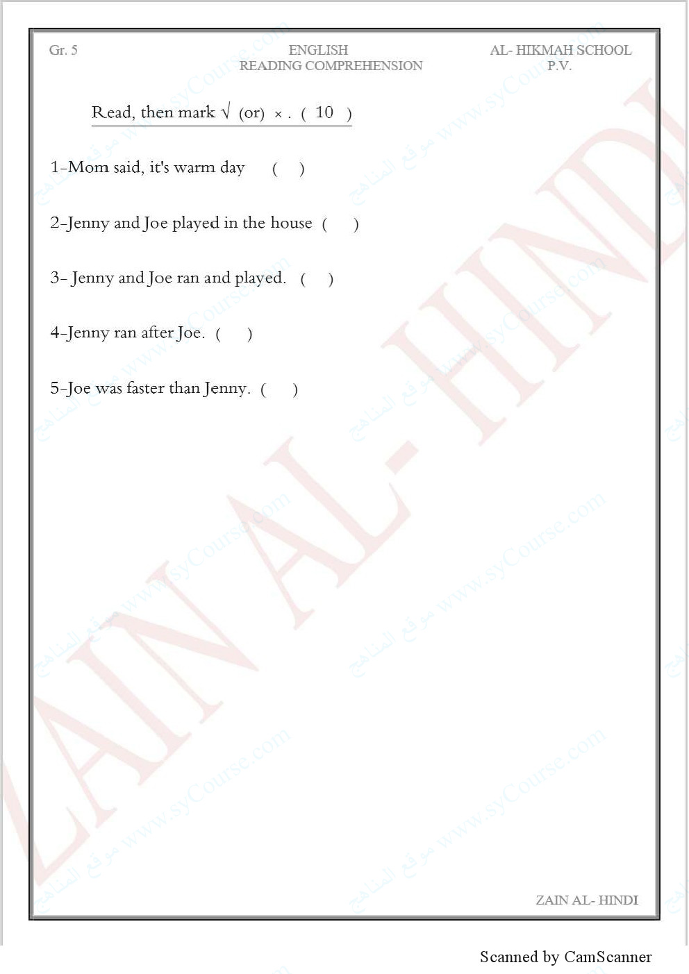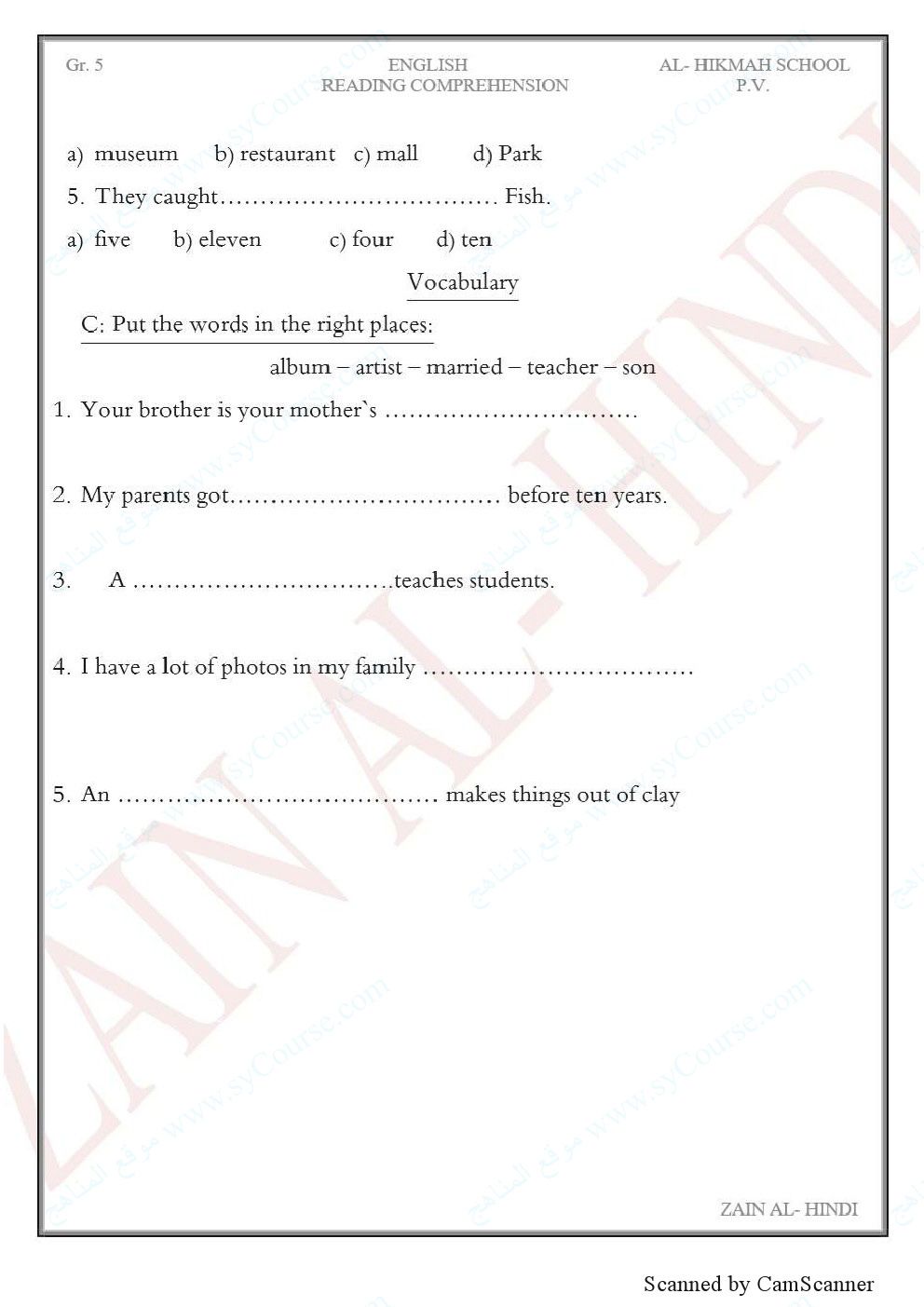 | الصف الخامس | |||
