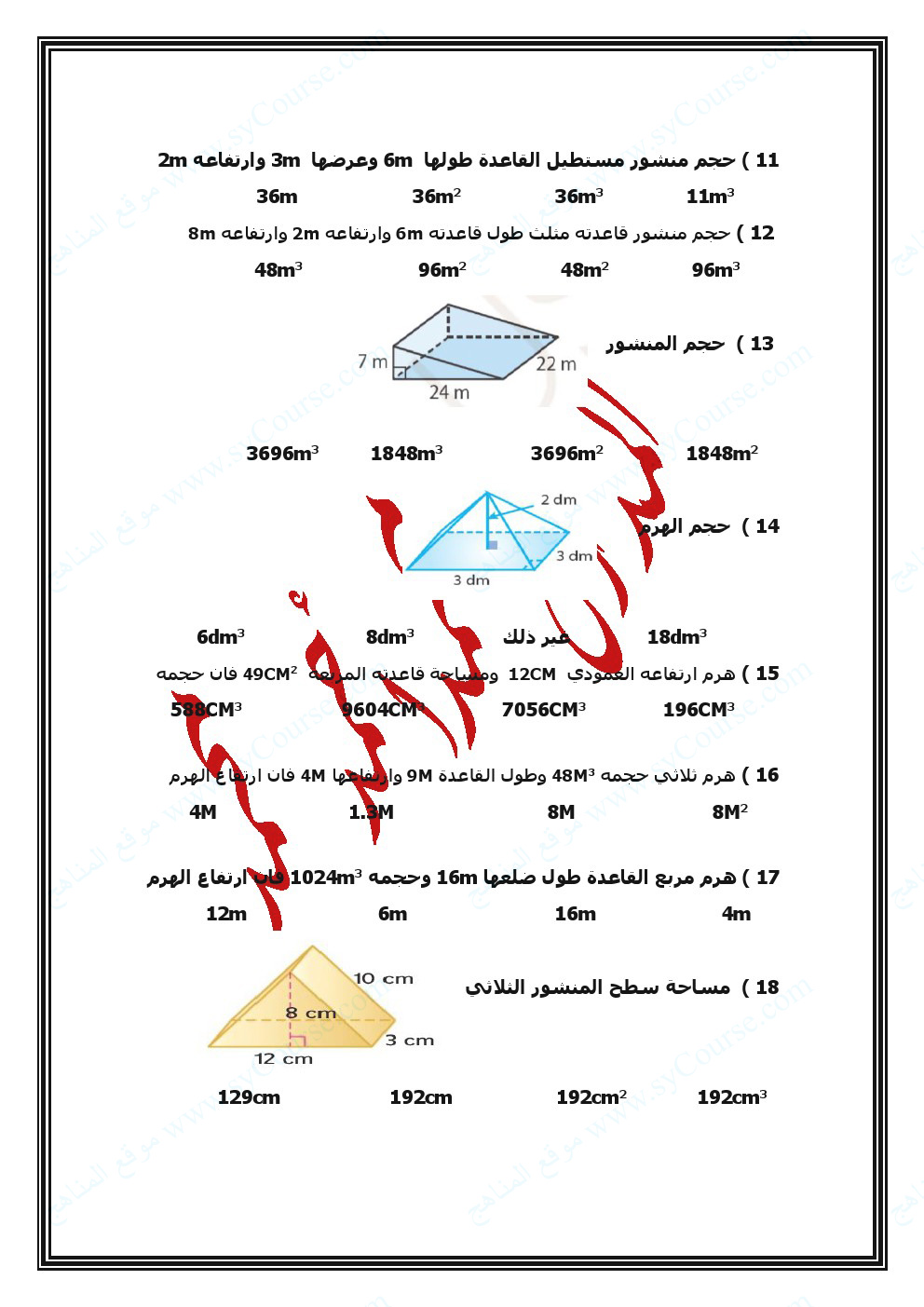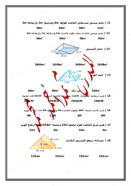 الصف السابع, الفصل الثالث, رياضيات, مراجعة لامتحان منتصف الفصل الثالث لرؤية الصورة بالحجم الكامل اضغط عليها: