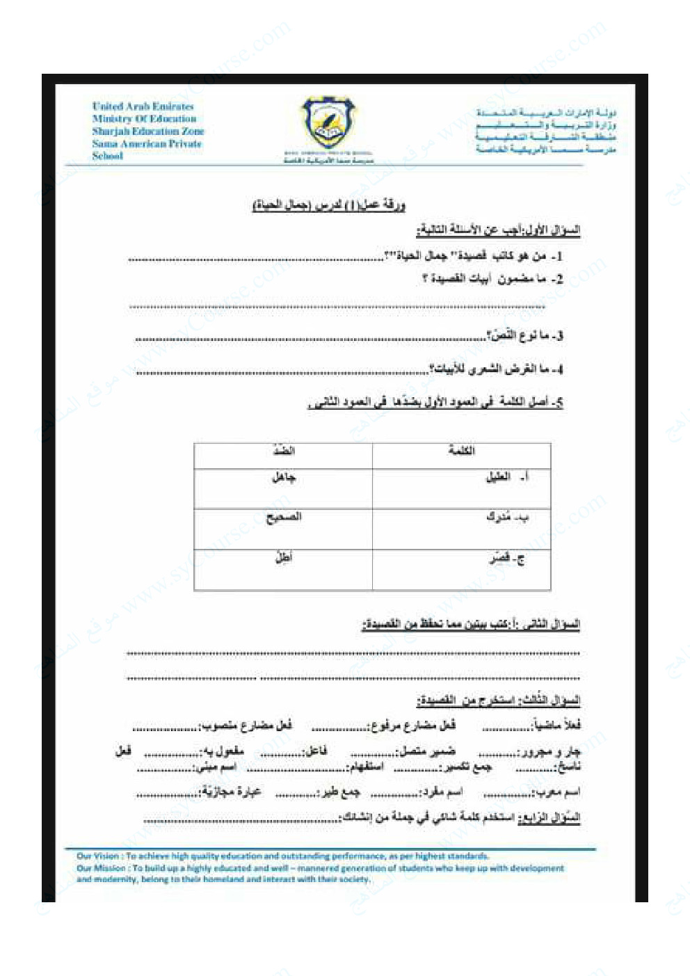 أهلاً بكم جميعاً طلاباً ومدرسين وأهالي طلبة ومهتمين، في قسم دولة الإمارات ، نحن الآن في الفصل الأول من العام الدراسي 2025/2026 وتاريخ اليوم 2025/10/11 م | |
