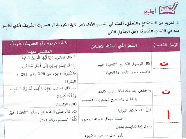 الصف الثامن, الفصل الثالث, لغة عربية, درس الاقتباس |