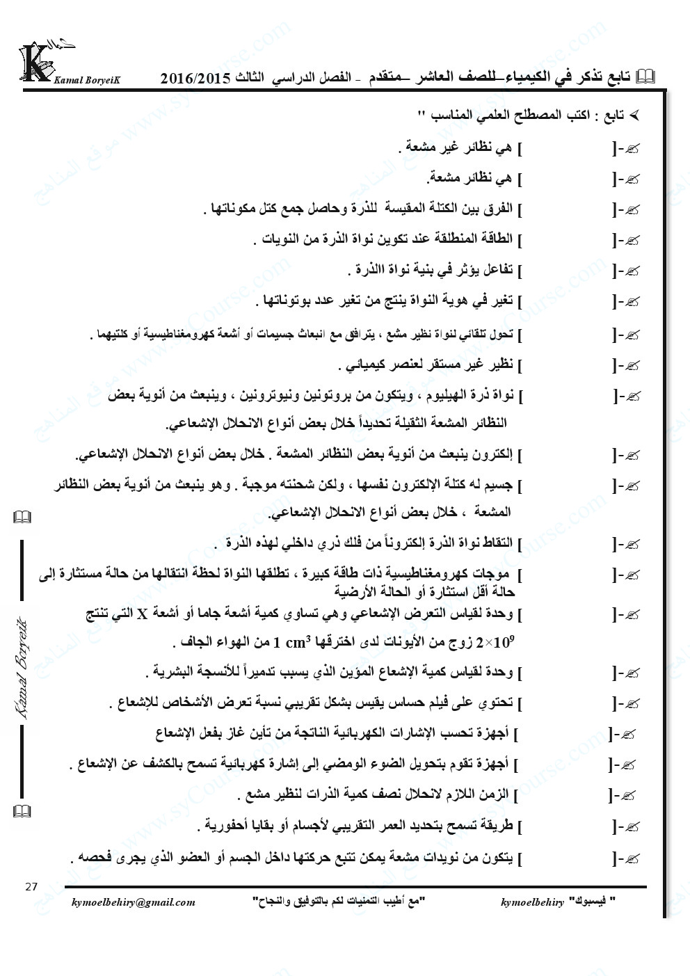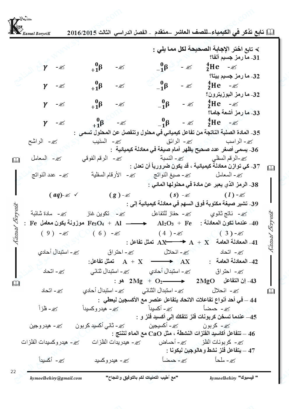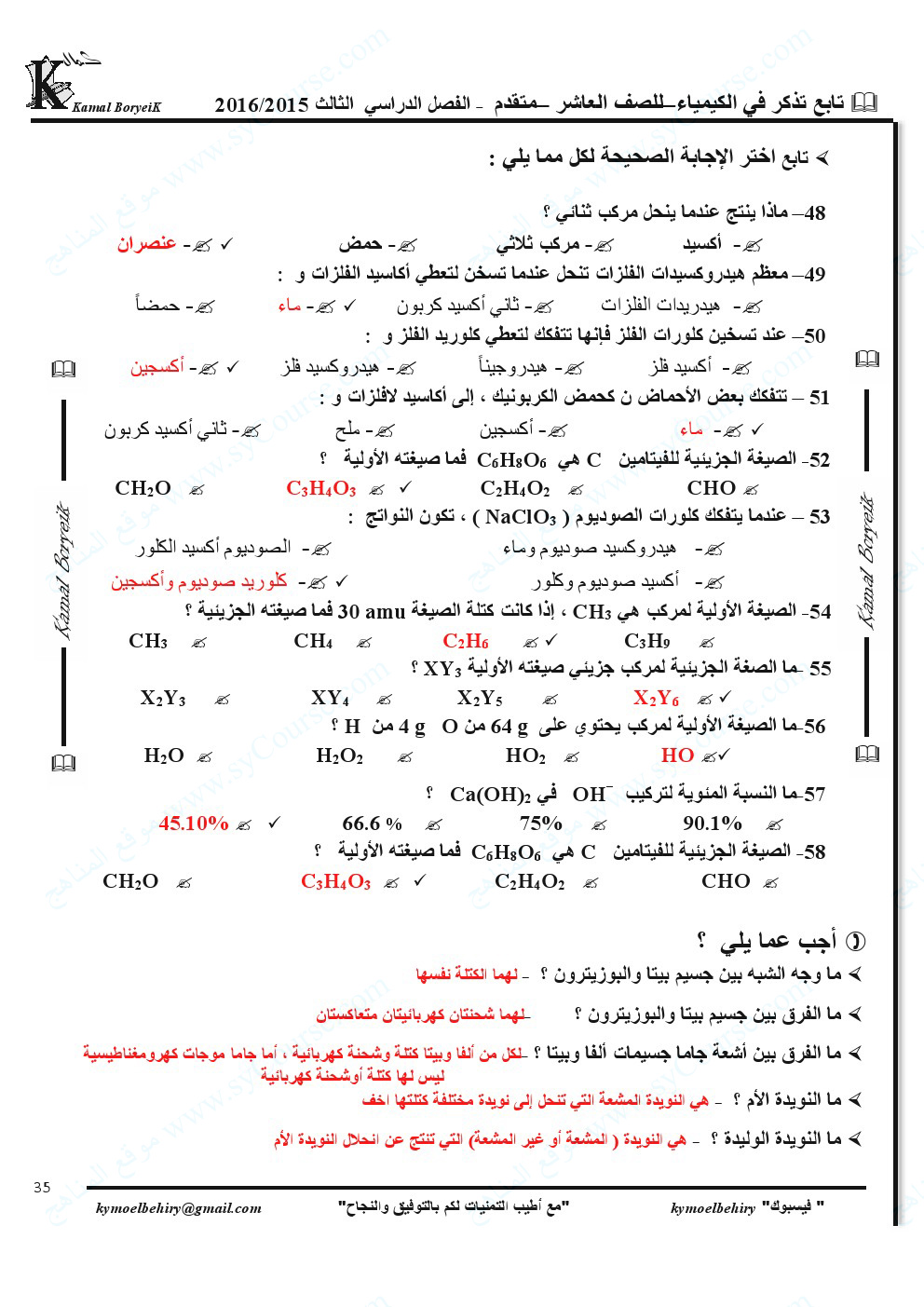 7. الصف الثاني عشر المتقدم, كيمياء, حل تجميعة صفحات الكتاب وفق الهيكل الوزاري المسار C-101 منهج بريدج
