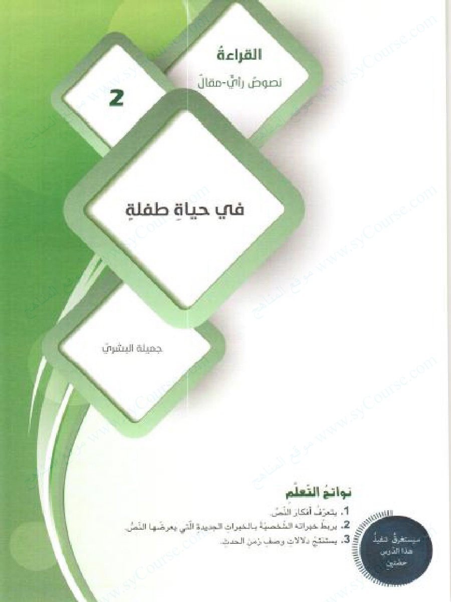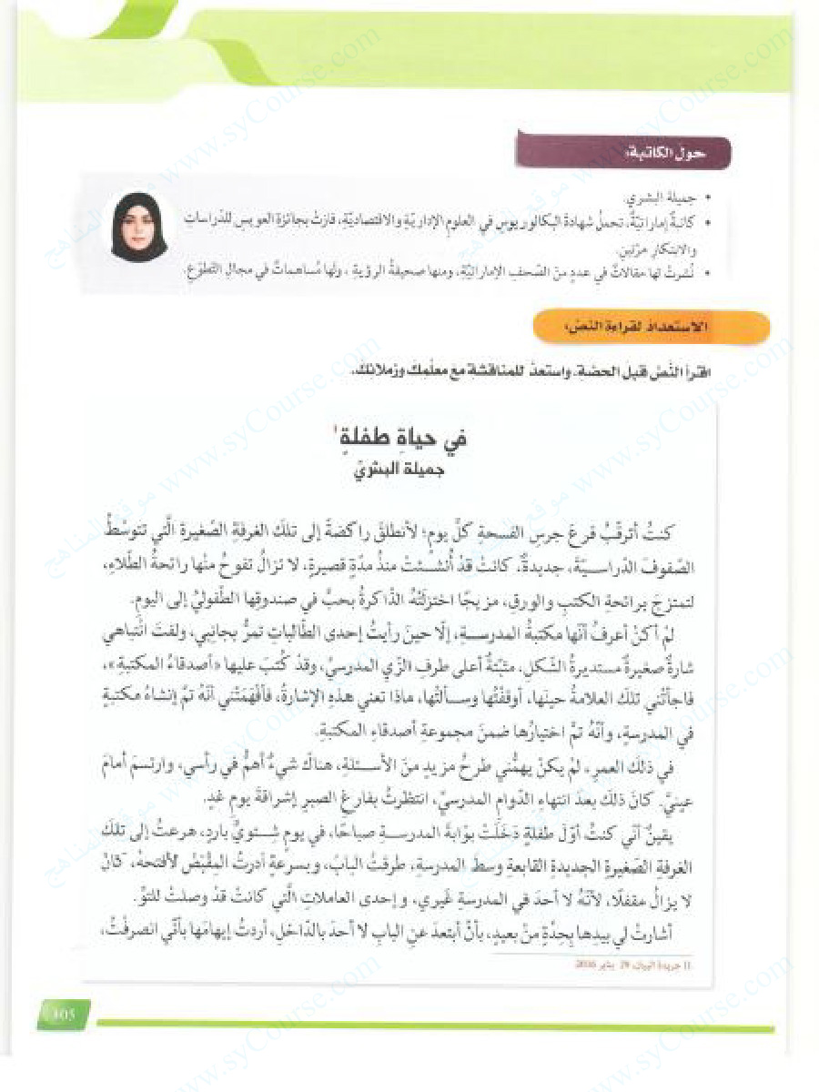 معلومات الملف: الصف التاسع, الفصل الثالث, لغة عربية ,حل درس في حياة طفلة. | ||