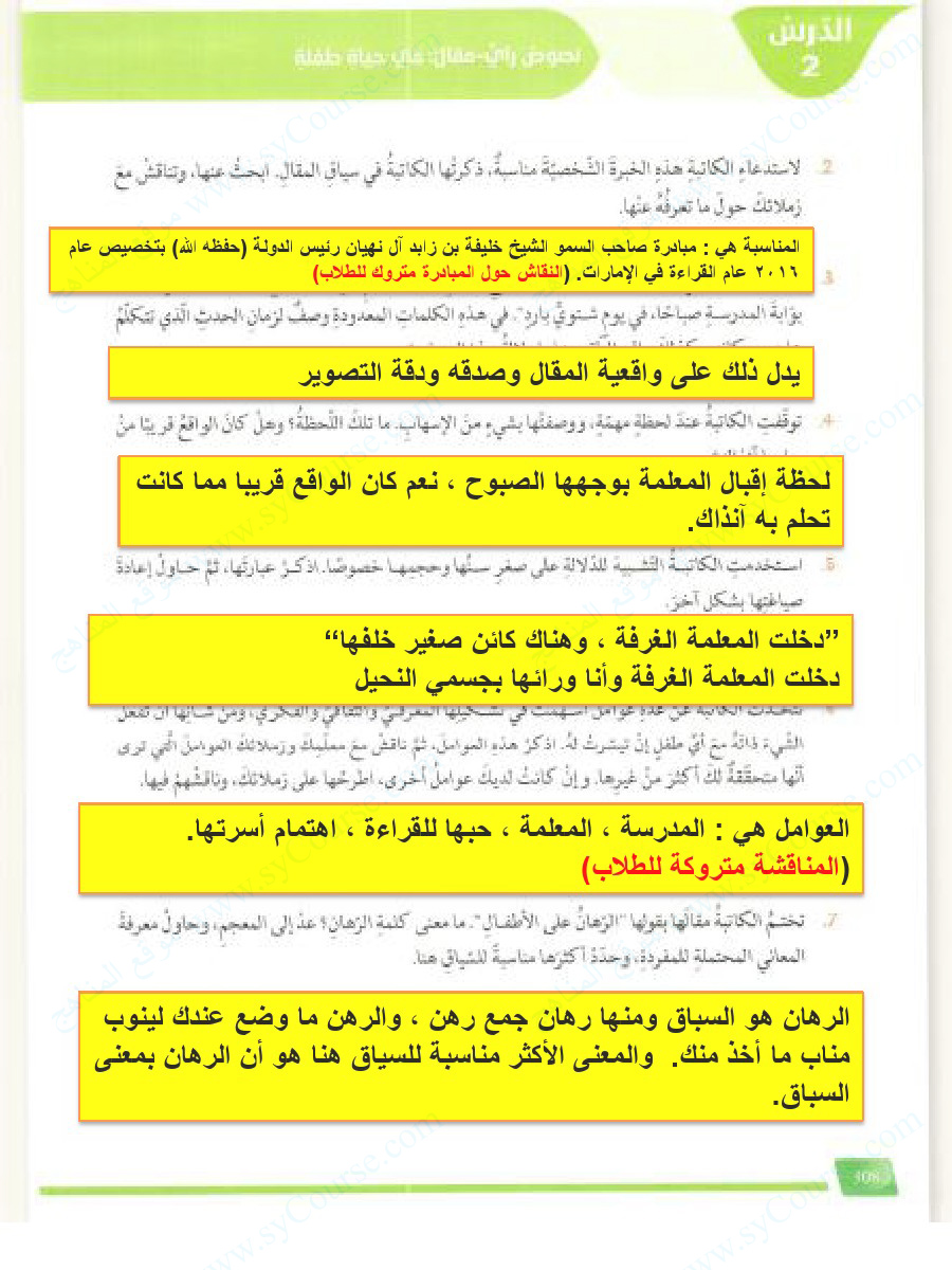 الملاحظات المثبتة في المناهج الإماراتية | |