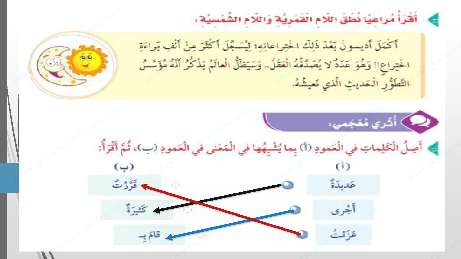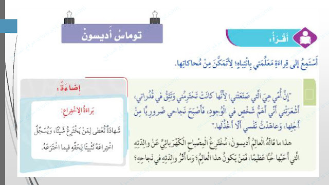 الصف الثالث, الفصل الثالث, لغة عربية, حل درس توماس اديسون | ||