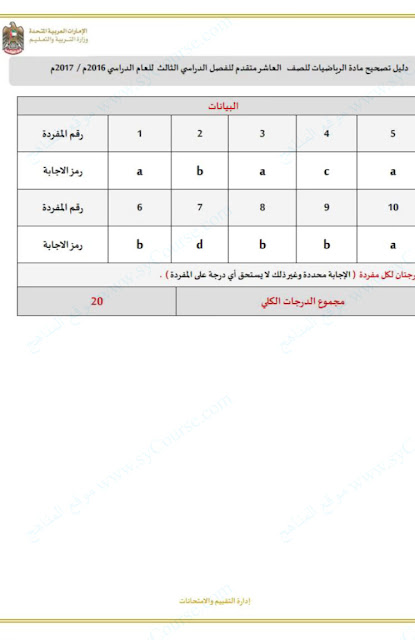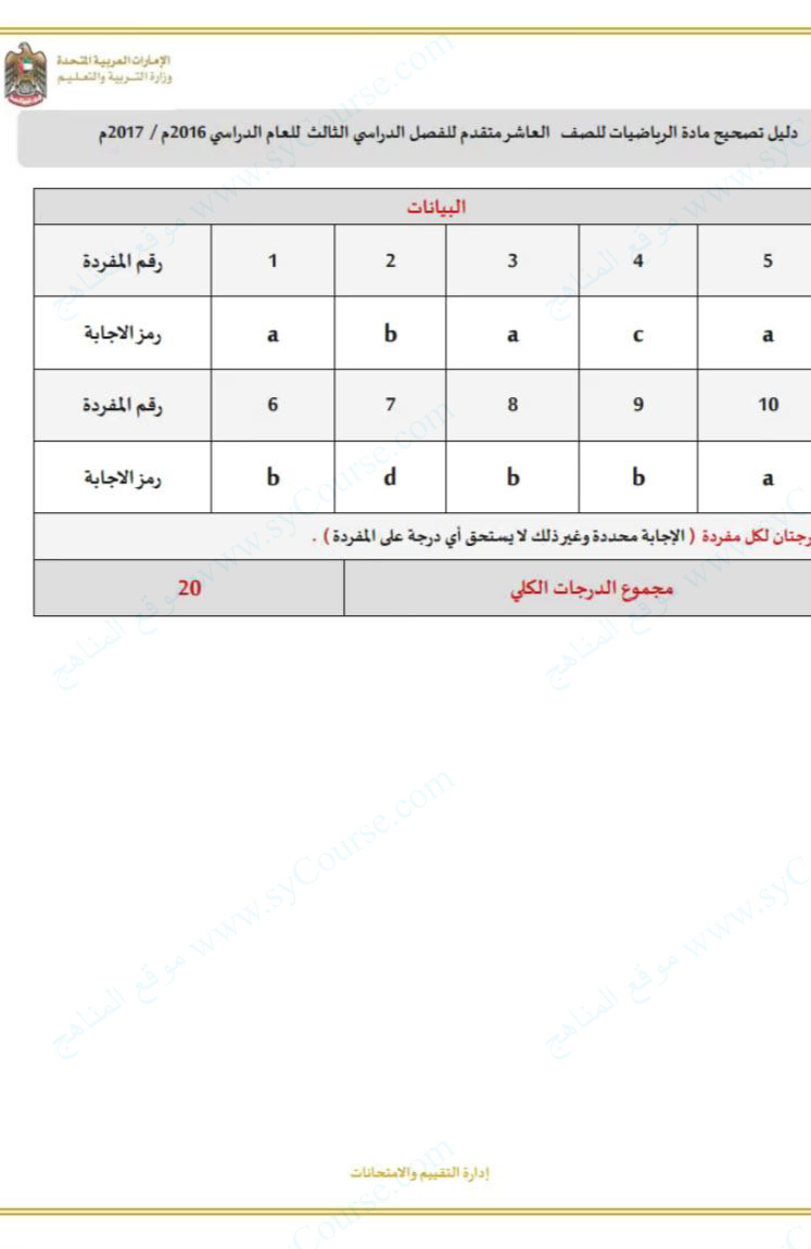 النموذج الوزاري في مادة الرياضيات للصف العاشر المتقدم مع نموذج الاجابة- امتحان منتصف الفصل الثالث للعام الدراسي 2016-2017 | ||