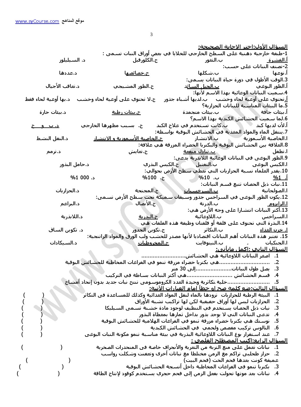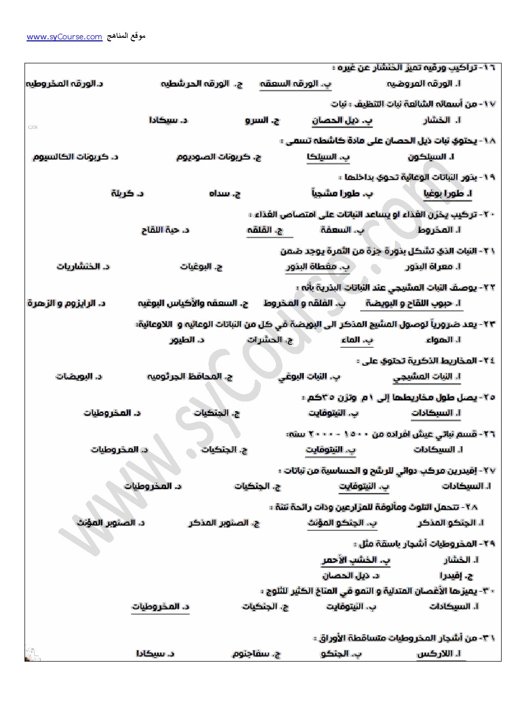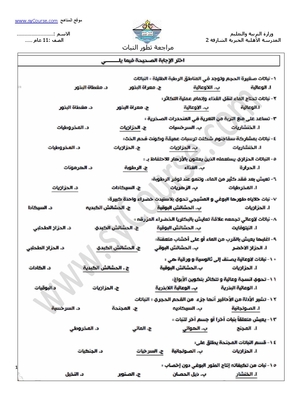 معلومات الملف: الصف الحادي عشر العام, الفصل الثالث, علوم, مراجعة تطور النبات | |||