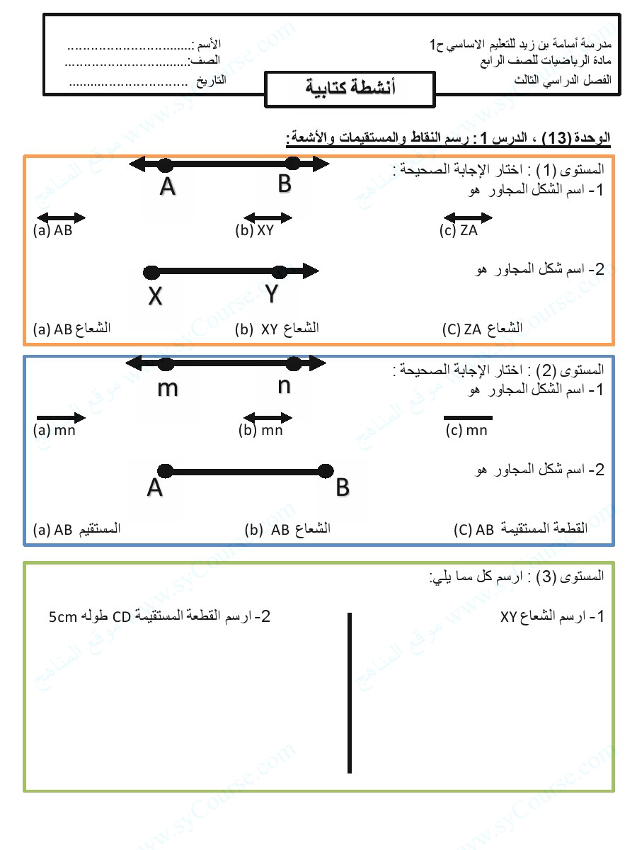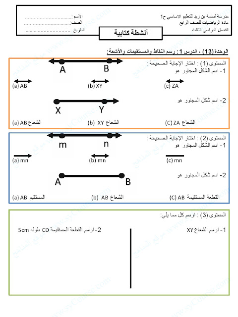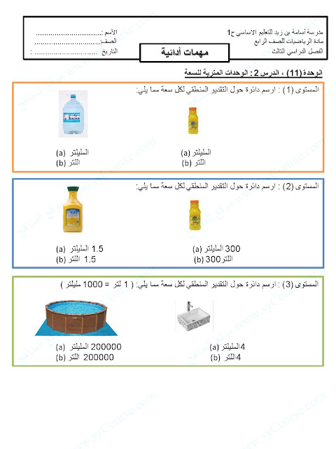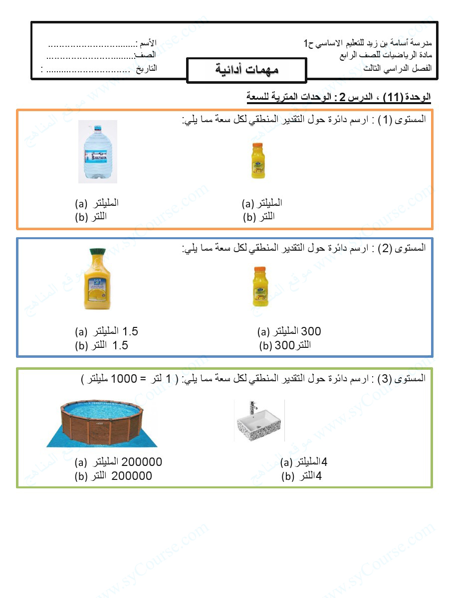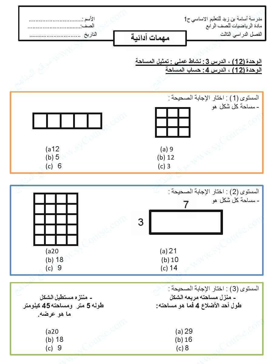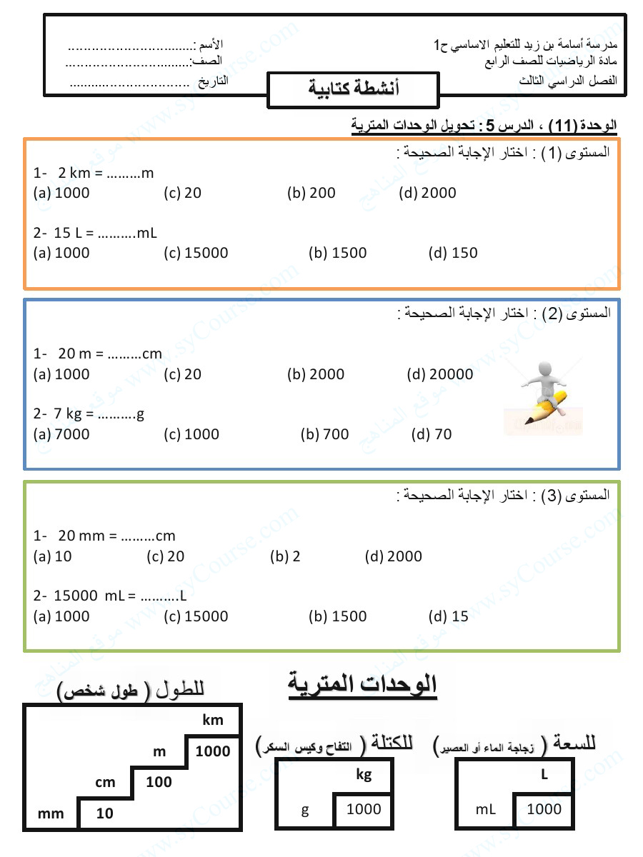 الصف الرابع, الفصل الثالث, رياضيات, أوراق عمل الوحدتين ال11 وال12 |