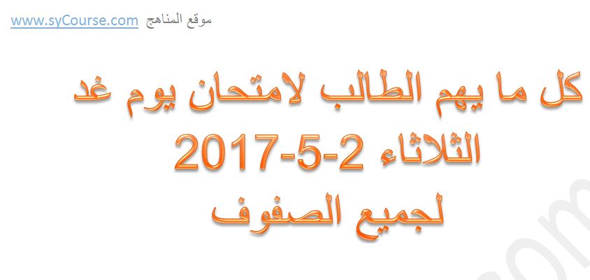 كا ما يهم الطالب لامتحان يوم غد الثلاثاء 252017 | ||