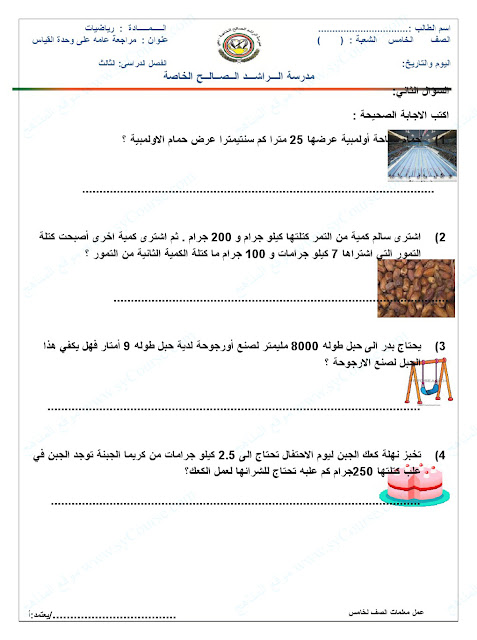 معلومات الملف: الصف الخامس, الفصل الثالث, رياضيات, مراجعة لوحدة القياس | ||