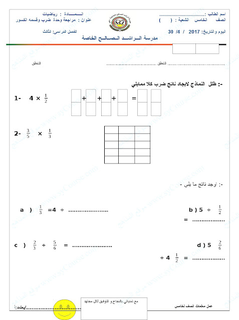 مراجعة لضرب وقسمة الكسور | ||