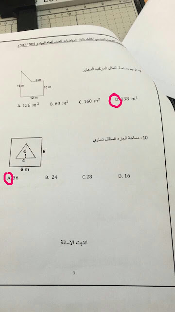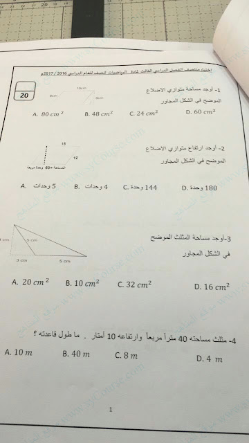 الصف السادس, الفصل الثالث, رياضيات, الأسئلة الوزارية لامتحان منتصف الفصل الثالث 2017 |