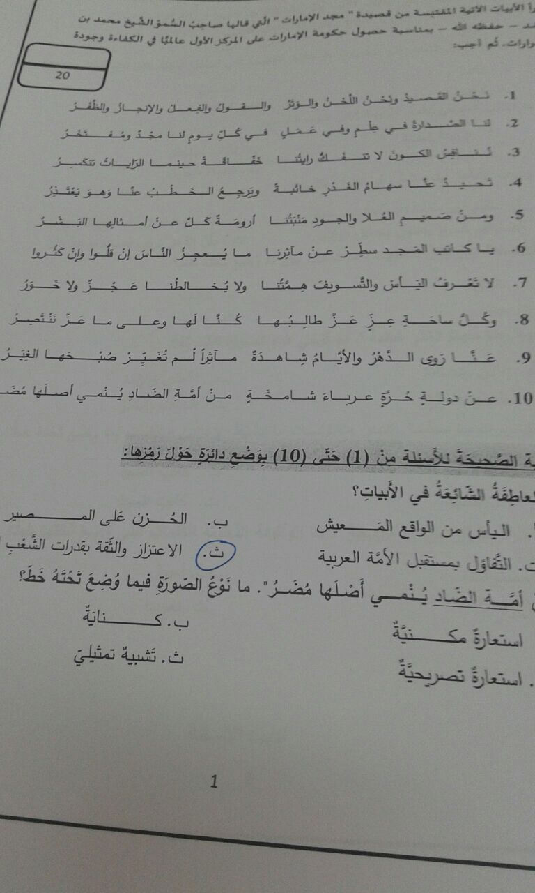 أنت هنا: موقع المناهج ⇦ المناهج الإماراتية ⇦ الصف الحادي عشر ⇦ لغة عربية ⇦ الفصل الثالث ⇦ الامتحان النهائي |