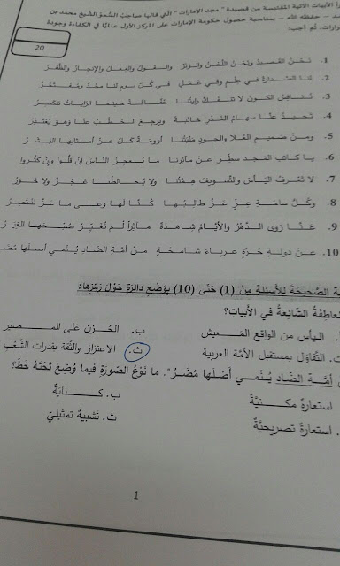 الصف الحادي عشر , الفصل الثالث, لغة عربية, اسئلة الامتحان الوزاري لمنتصف الفصل الثالث 2017 |