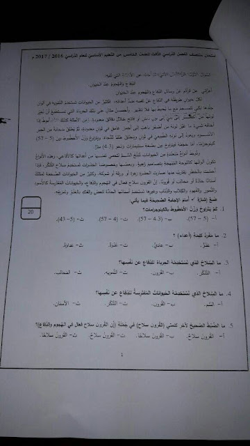 الصف الخامس, الفصل الثالث, لغة عربية, الاختبار الوزاري لمنتصف الفصل الثالث 2017 |
