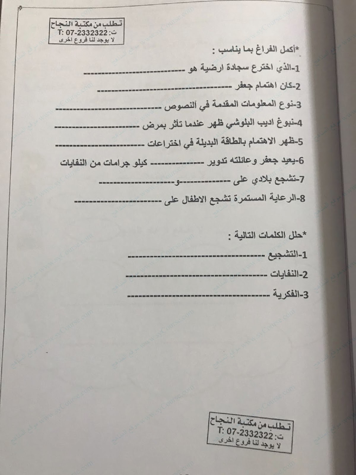 | السابق: .أوراق عمل الوحدات 11و12و13و14و15 مع الإجابات | الملف الحالي: 2519 | التالي: نموذج أسئلة اختبار تدريبي وفق الهيكل الوزاري الجديد متبوع بالإجابات | |