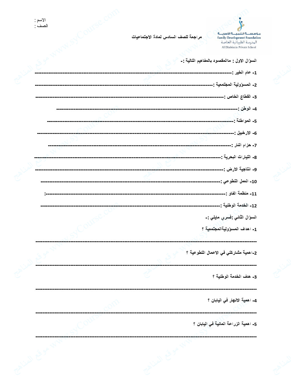 معلومات الملف: الصف السادس, الفصل الثالث, اجتماعيات, مراجعة شاملة | |||