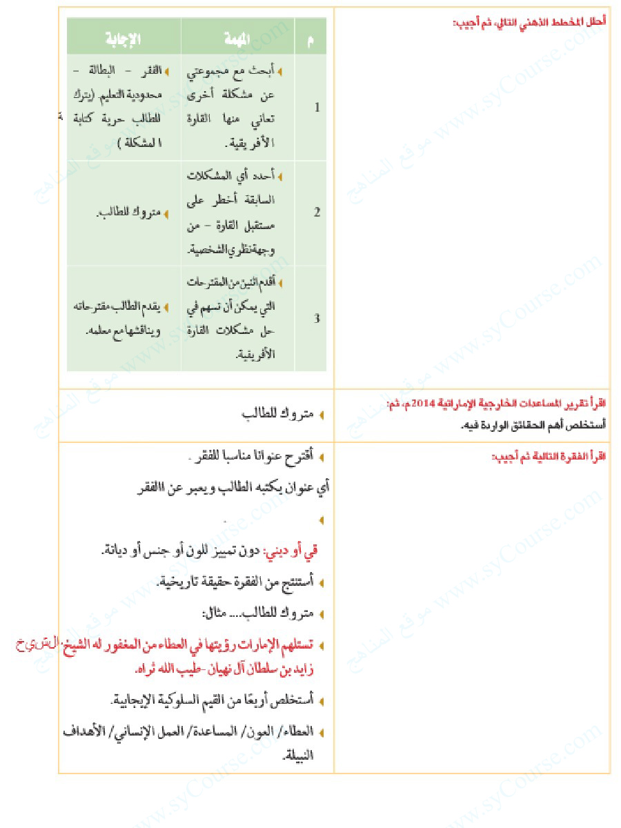 | الملاحظات المثبتة في المناهج الإماراتية | |