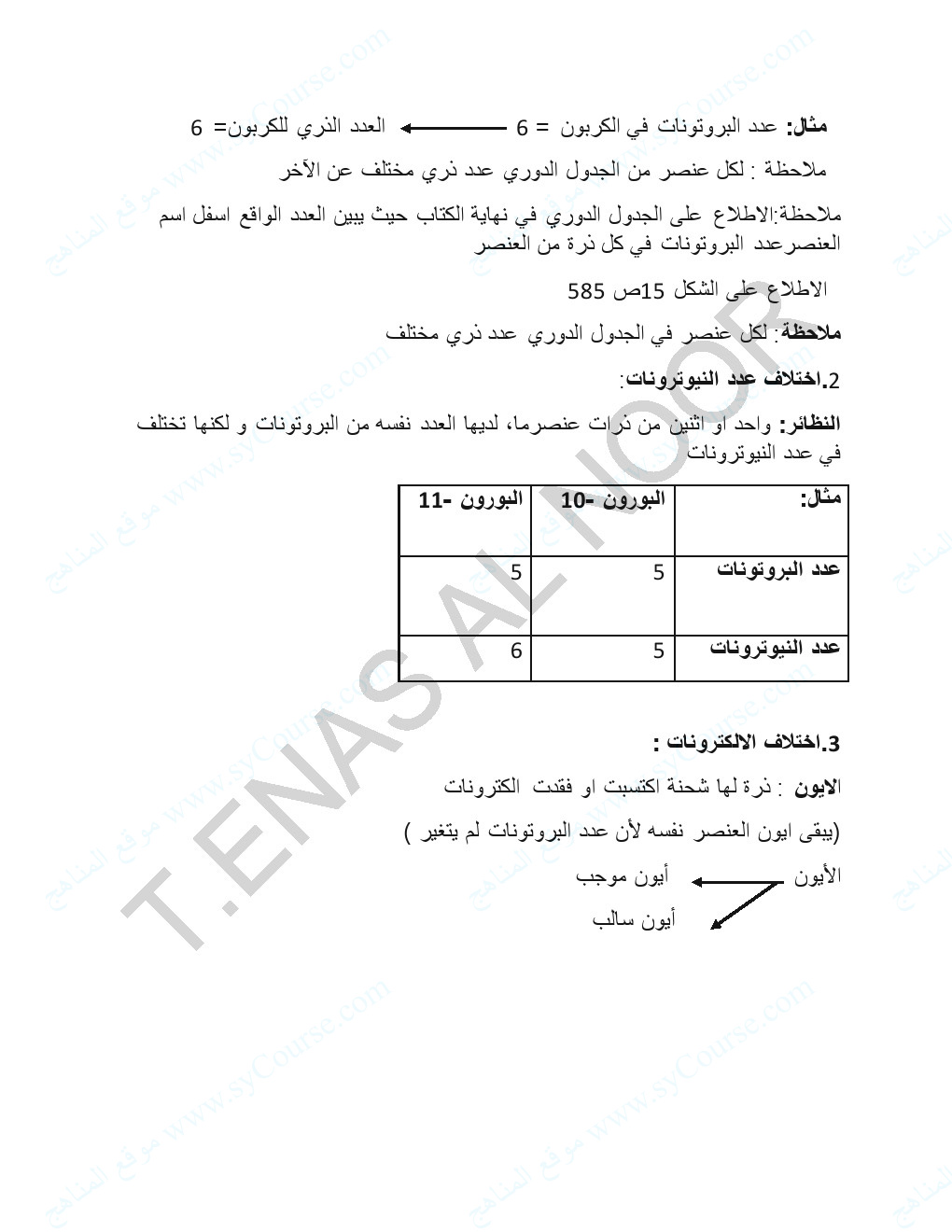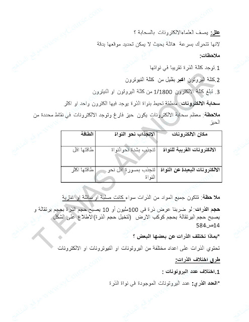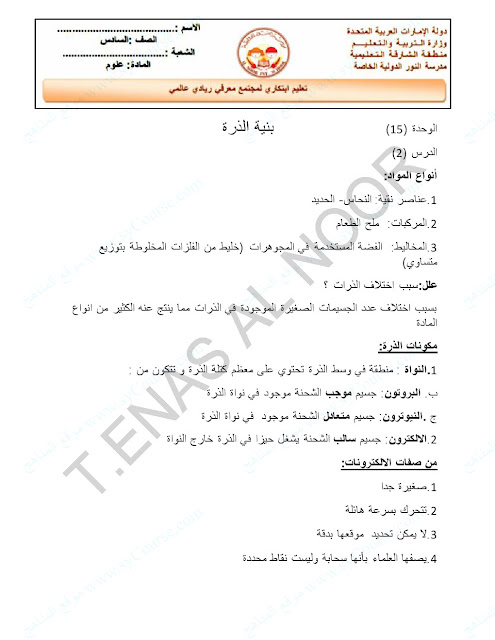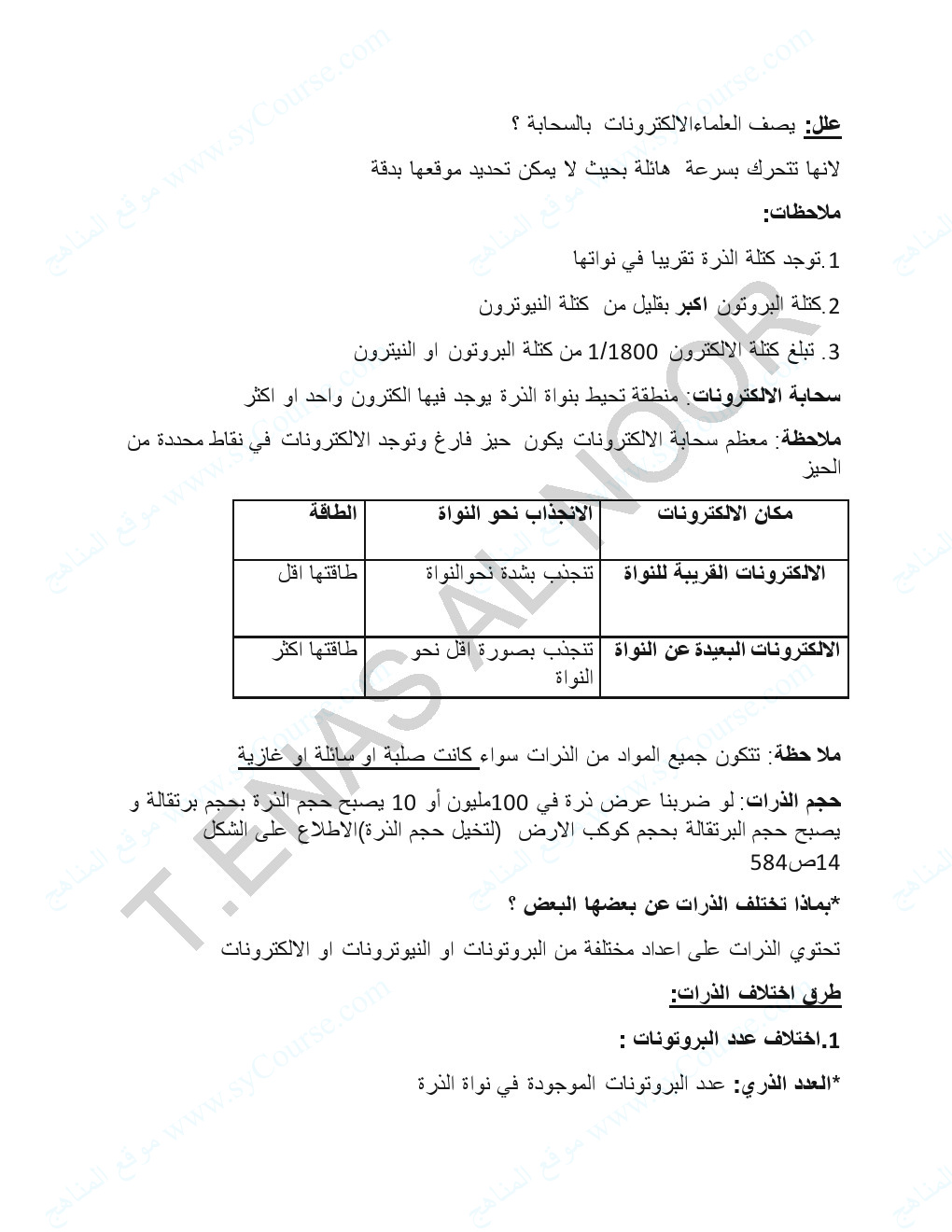 أوراق عمل (بنية الذرة) مع الحل | ||