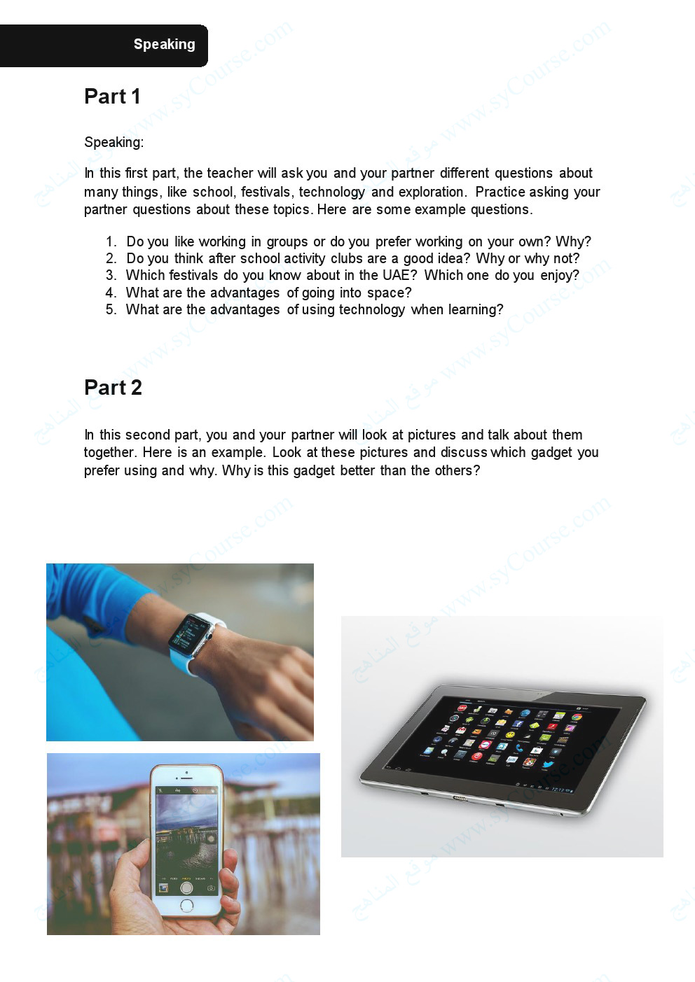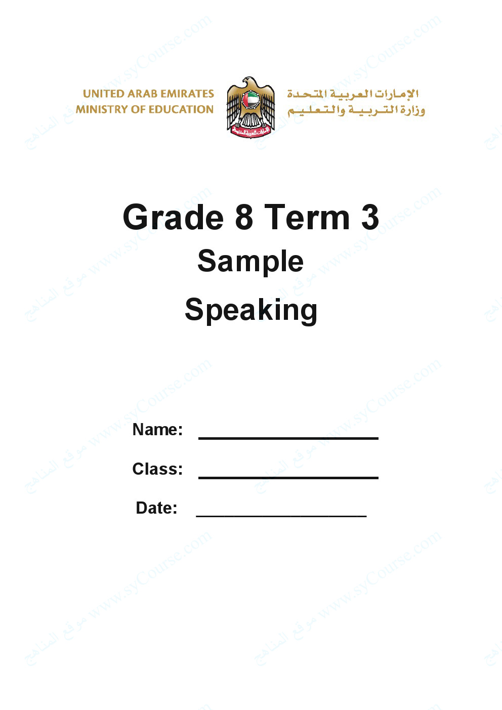 معلومات الملف: الصف الثامن, الفصل الثالث, لغة انكليزية, Grade 8 Term 3 Sample Speaking  | ||