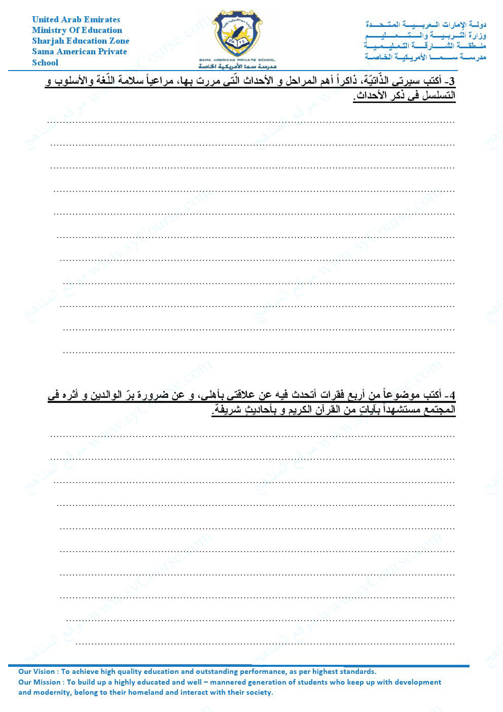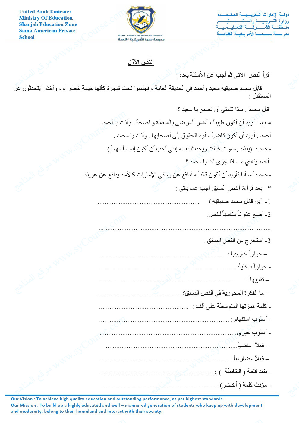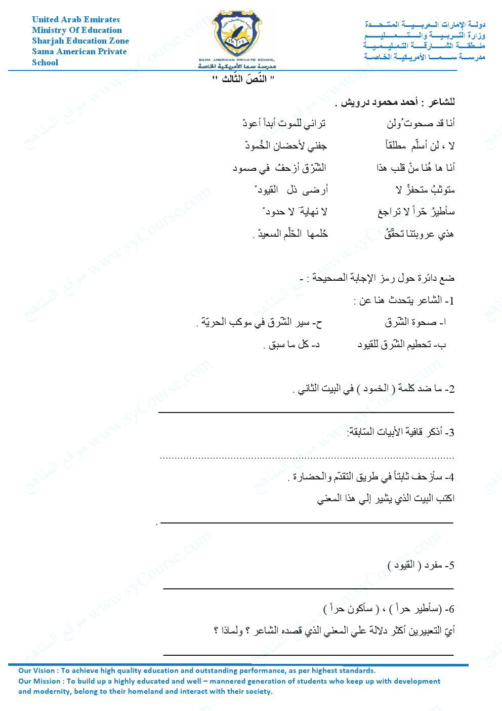 | أهلاً بكم جميعاً طلاباً ومدرسين وأهالي طلبة ومهتمين، في قسم دولة الإمارات ، نحن الآن في الفصل الأول من العام الدراسي 2025/2026 وتاريخ اليوم 2025/11/16 م | |