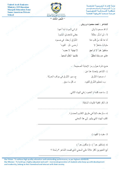 الصف الثامن, لغة عربية, امتحان شامل لعرض الصورة بالحجم الكامل: اضغط عليها: الامتحان مكوّن من 8 صفحات | ||