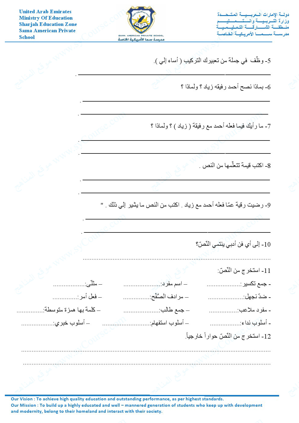 | المادة: لغة عربية | ||