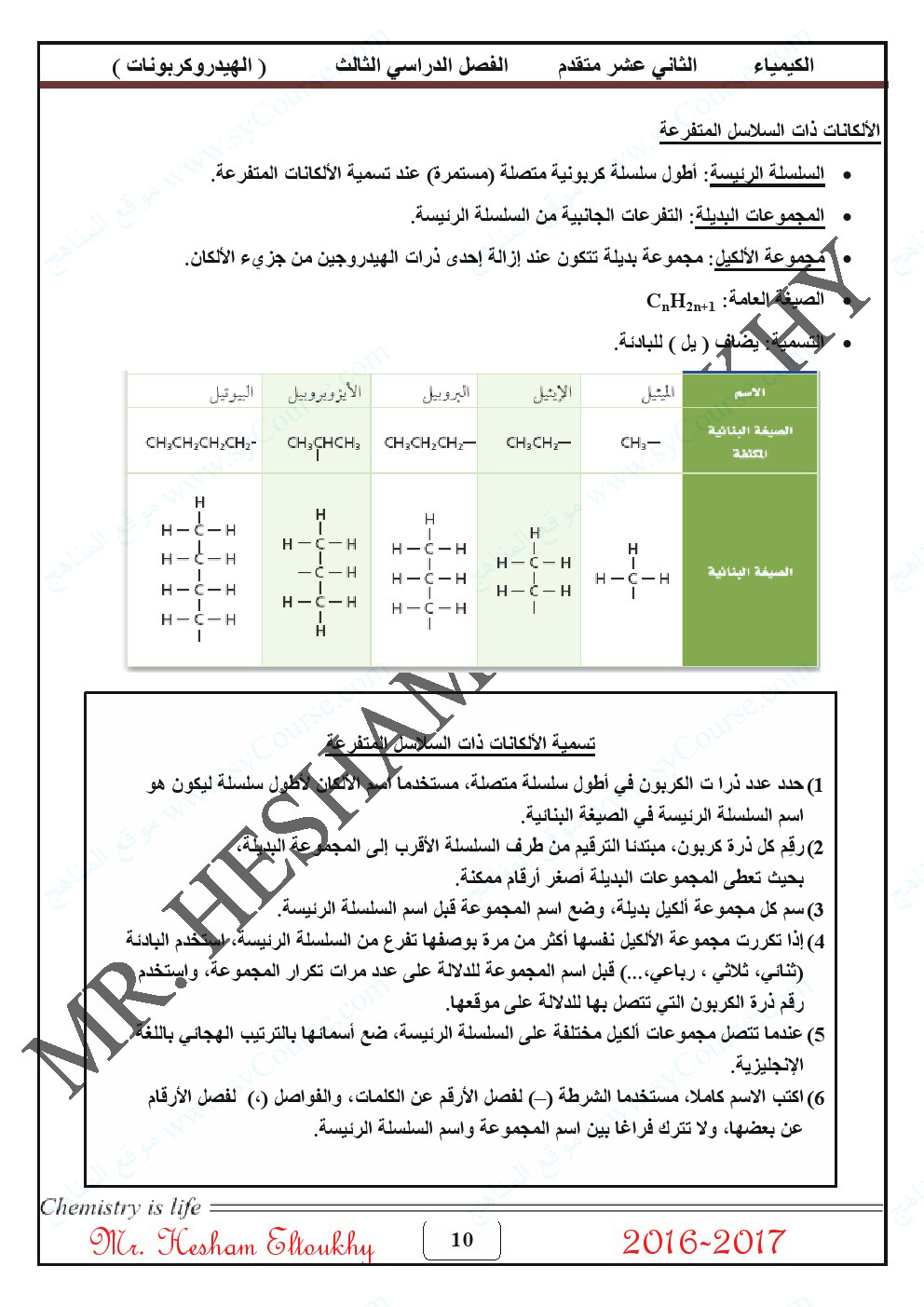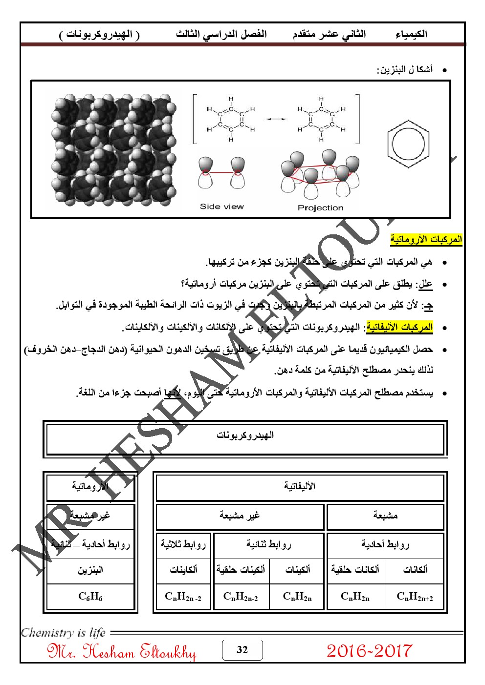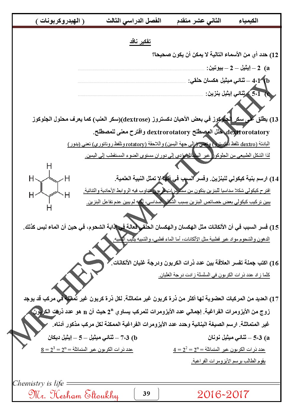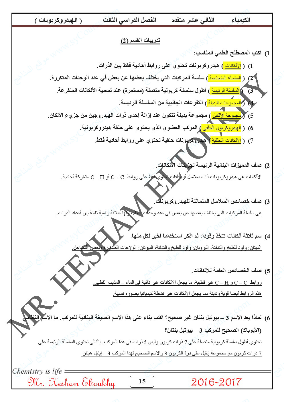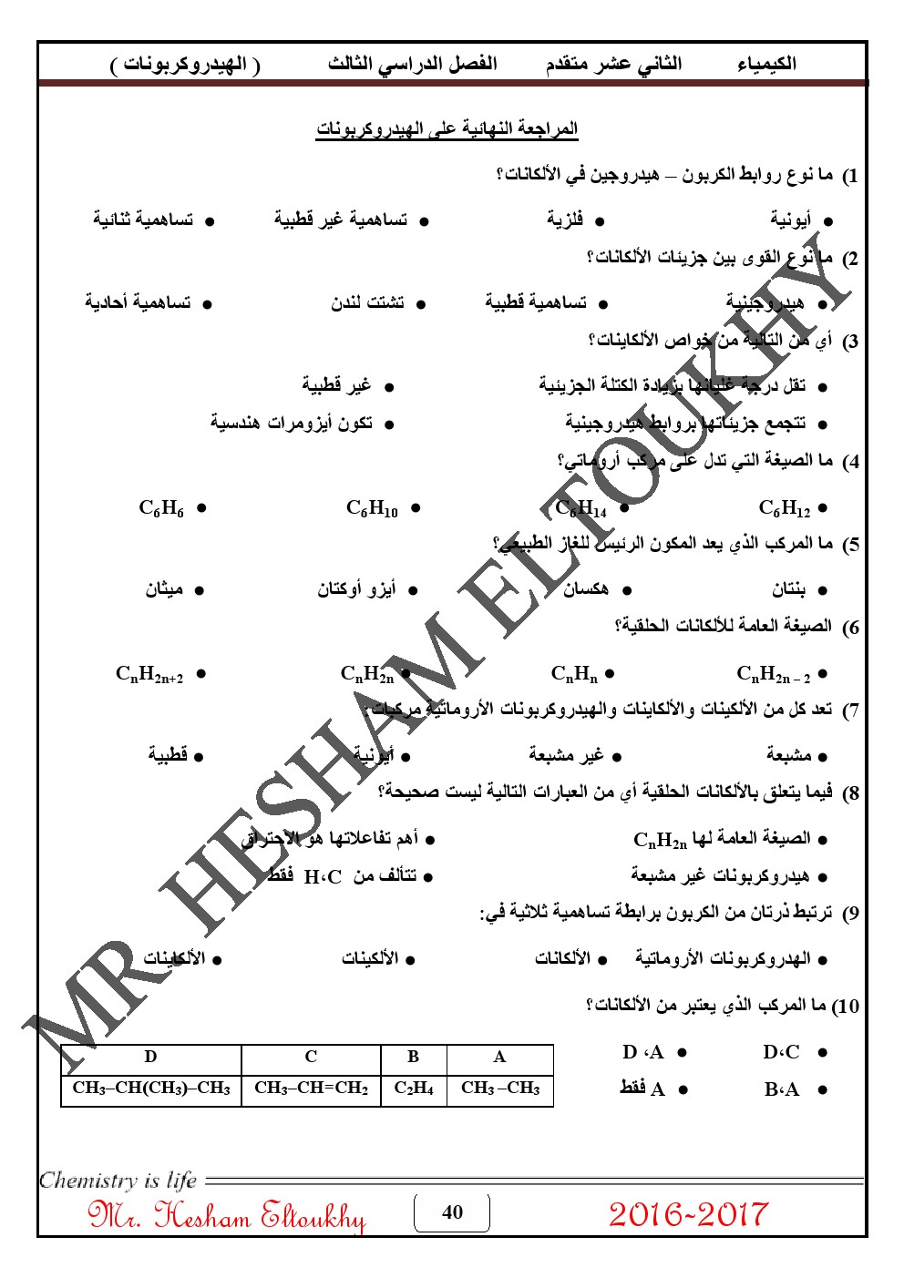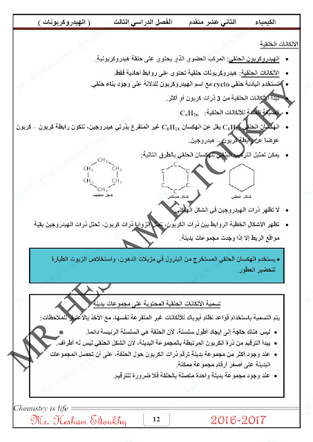 معلومات الملف: الصف الثاني عشر المتقدم, الفصل الثالث, كيمياء, الهيدروكربونات كاملة | |||