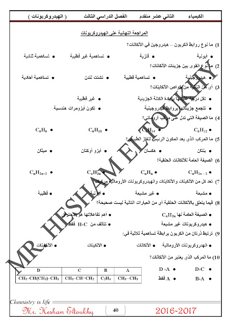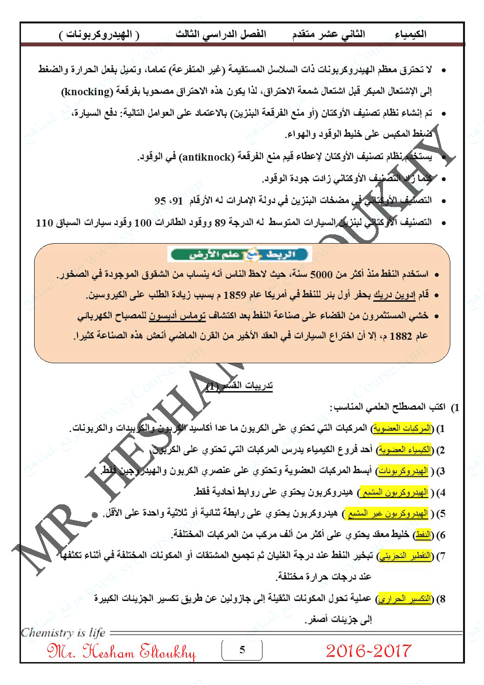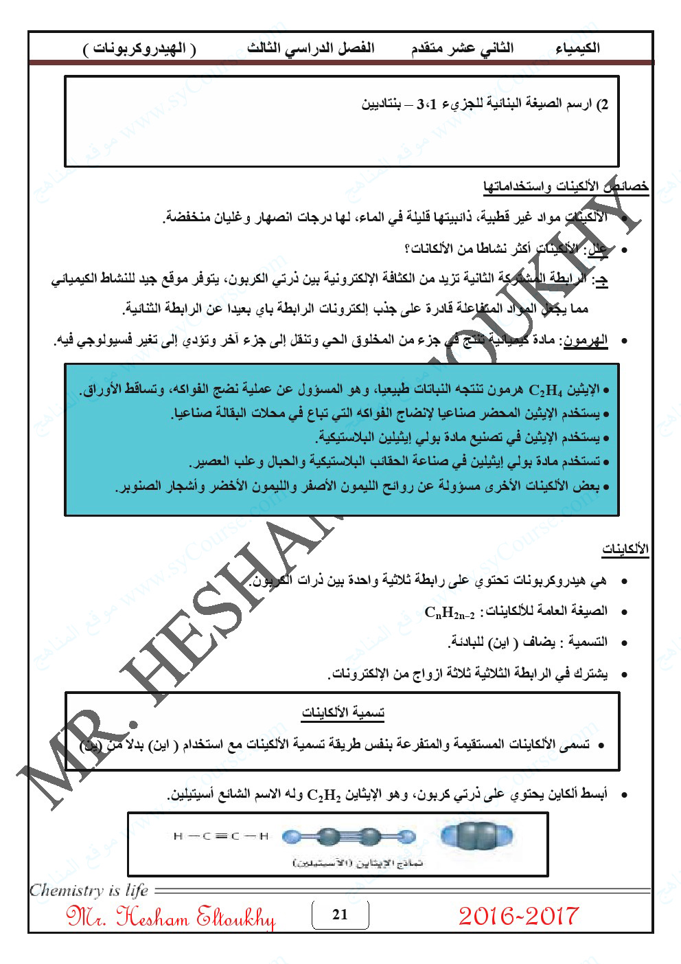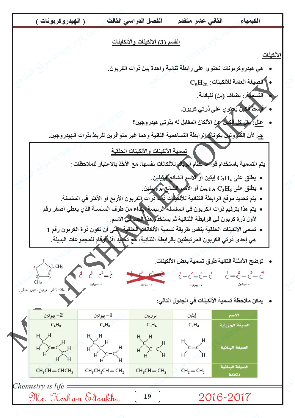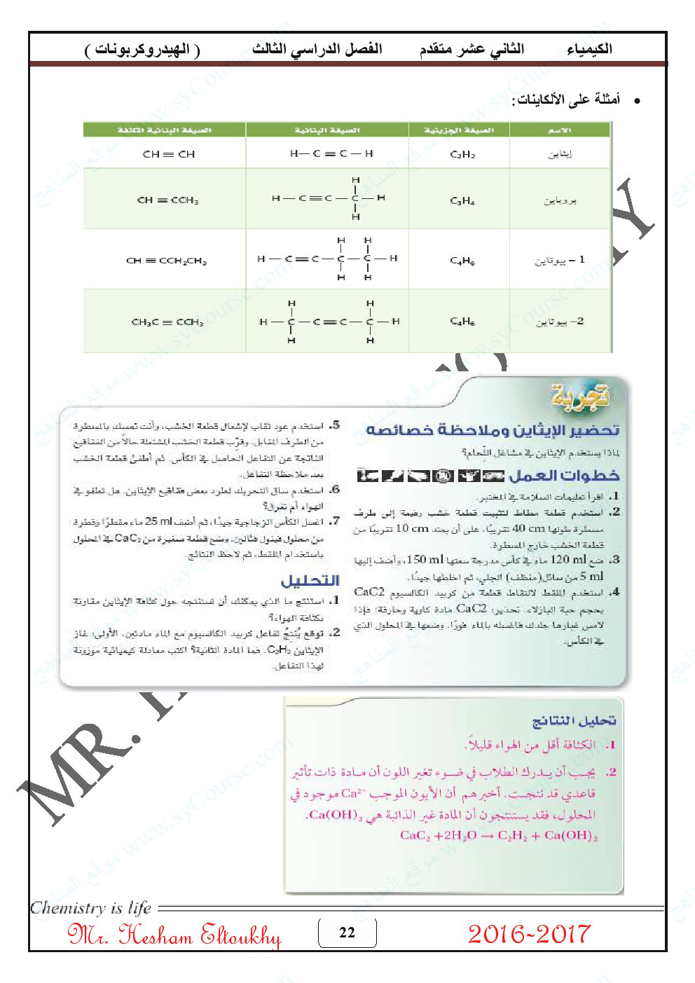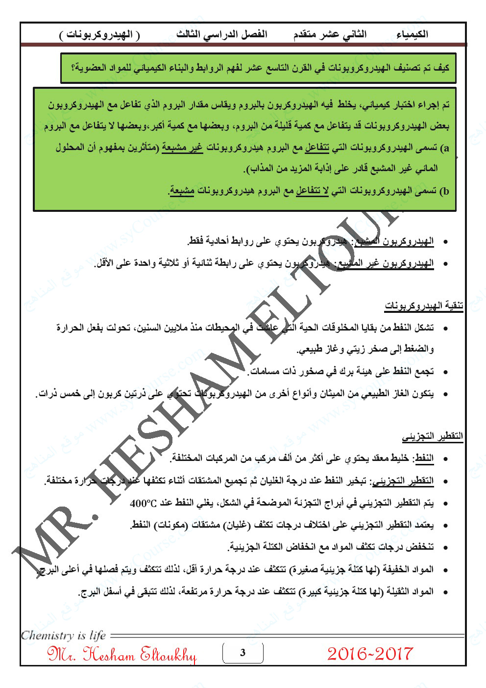 معلومات الملف: الصف الثاني عشر المتقدم, الفصل الثالث, كيمياء, الهيدروكربونات كاملة | |||