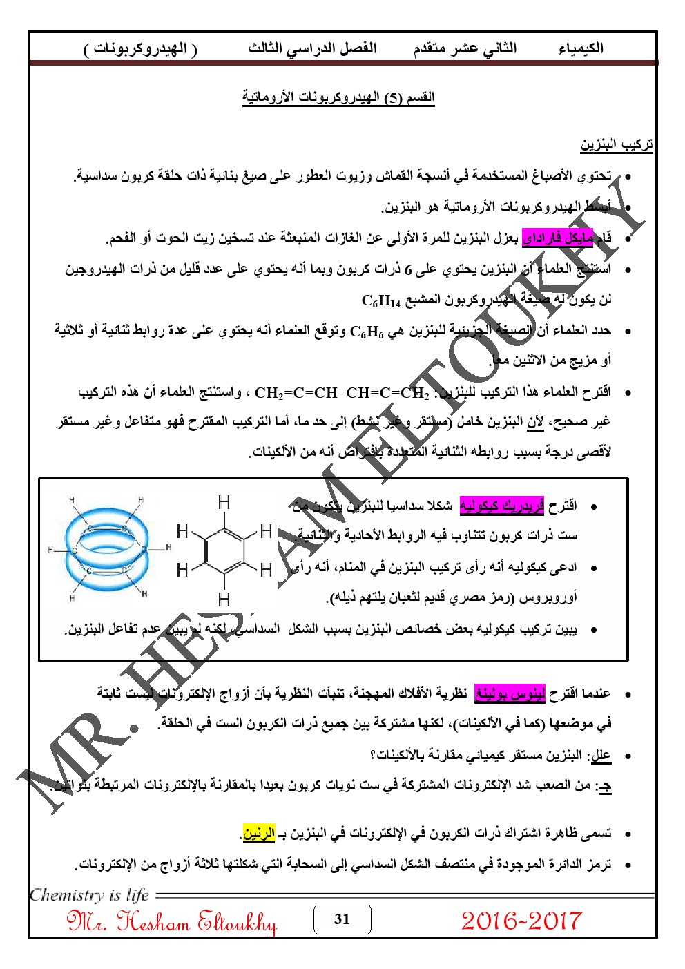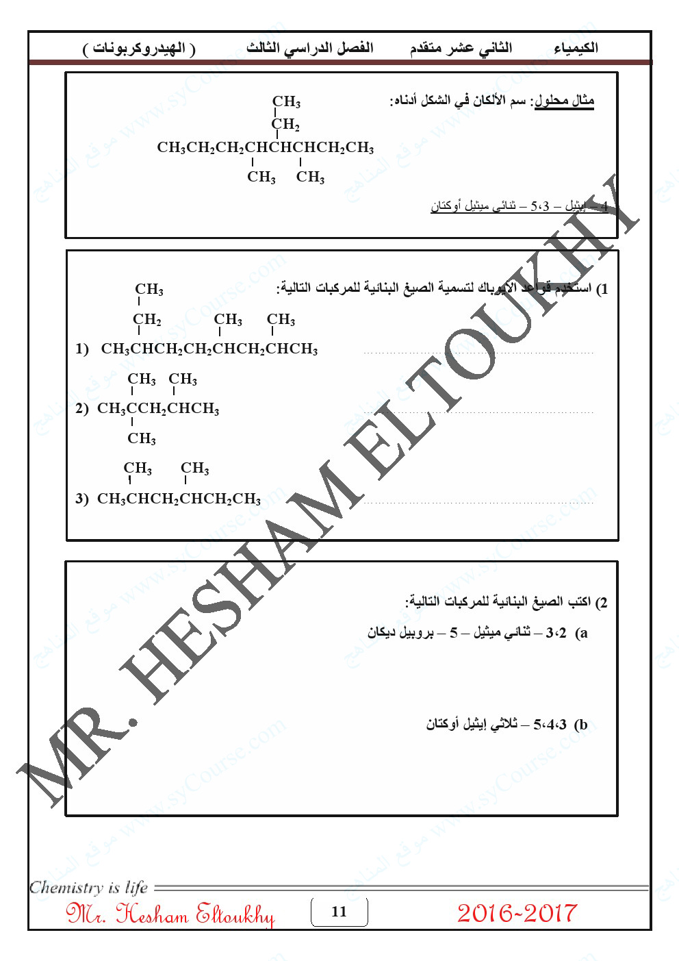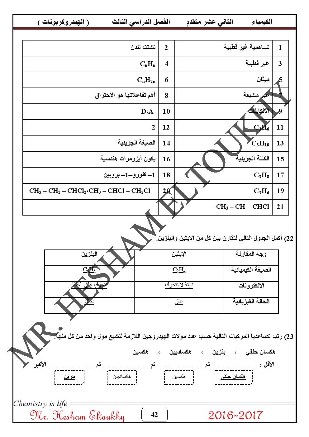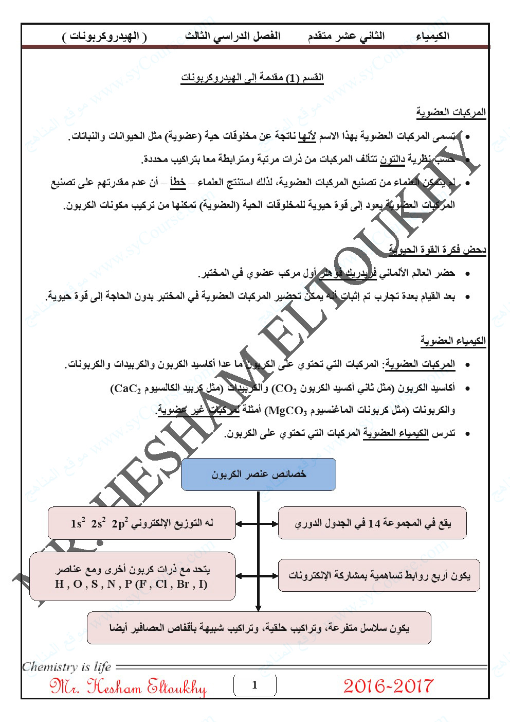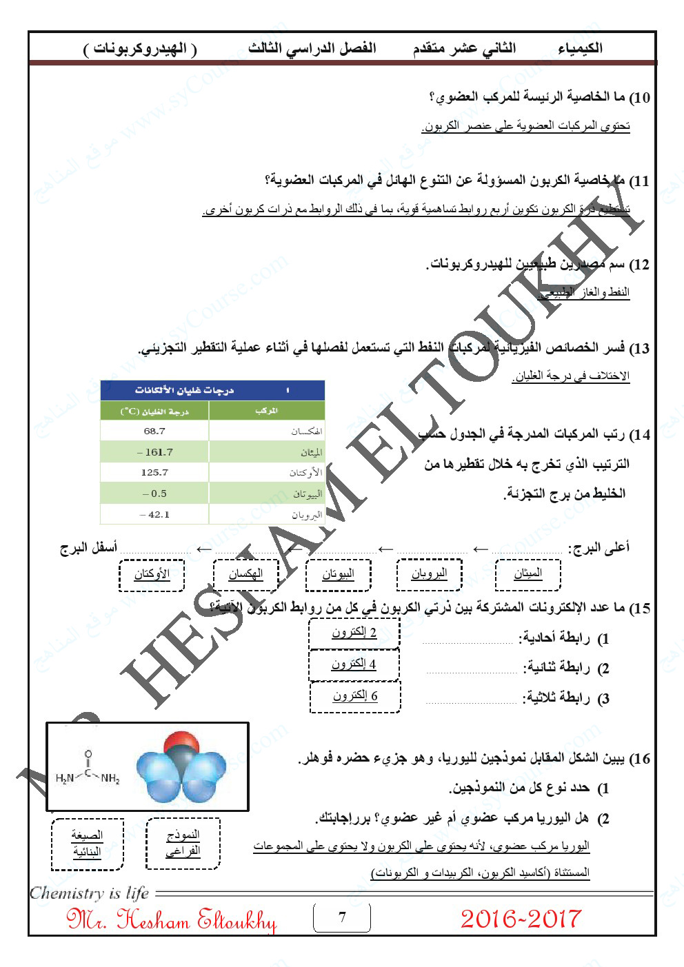 معلومات الملف: الصف الثاني عشر المتقدم, الفصل الثالث, كيمياء, الهيدروكربونات كاملة | |||
