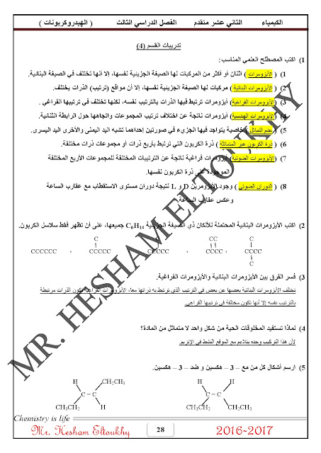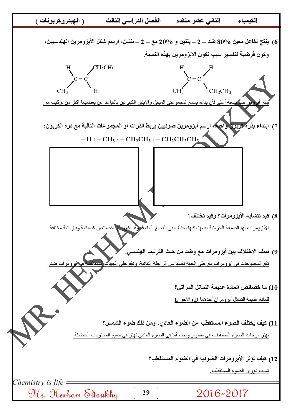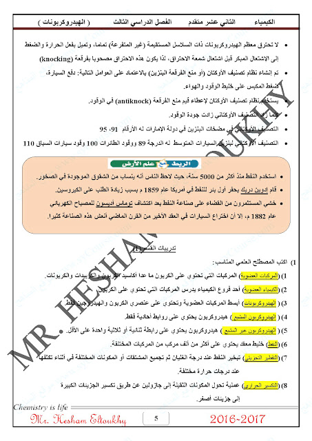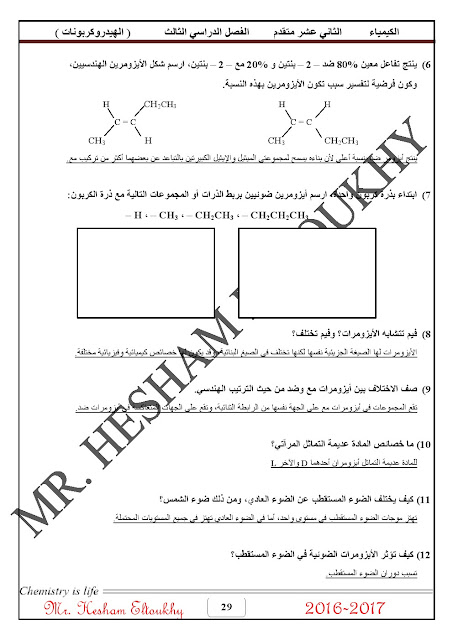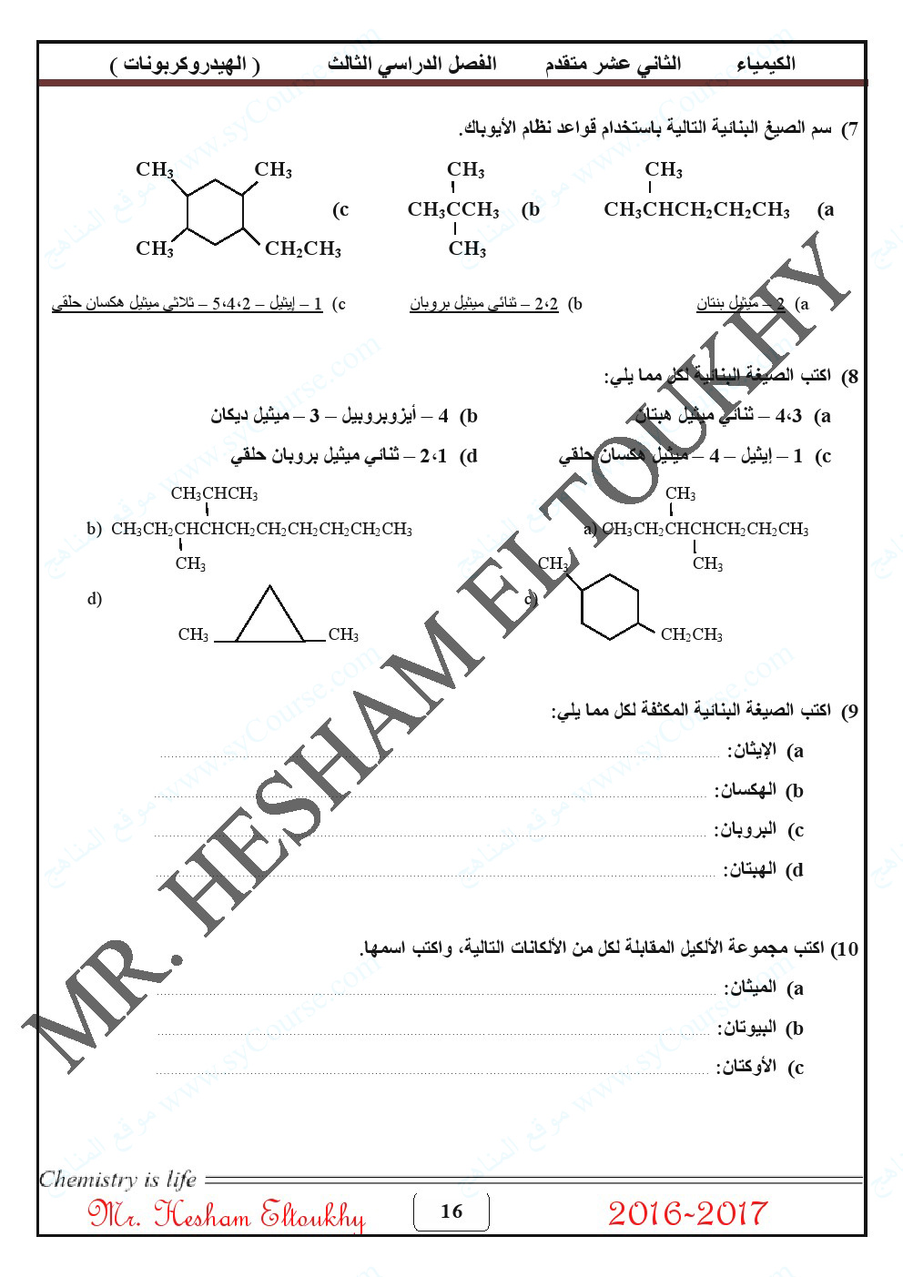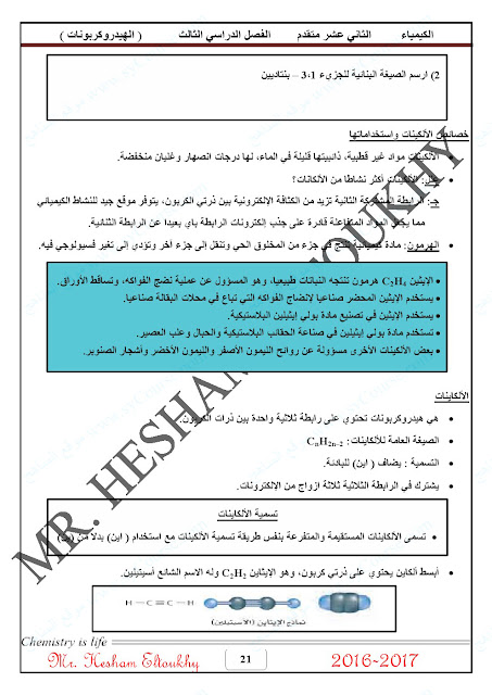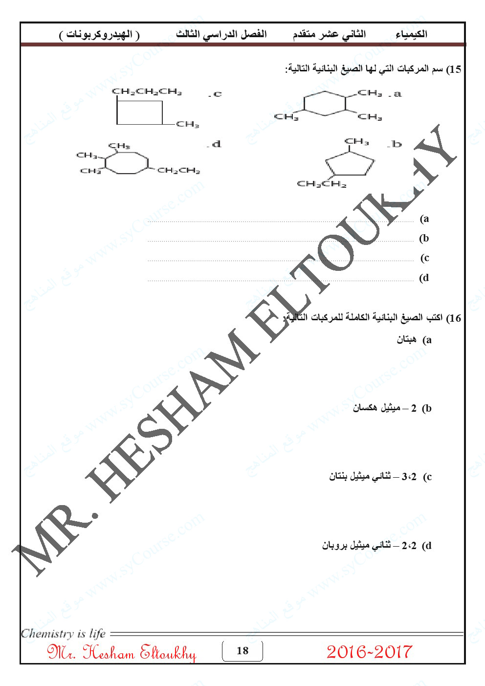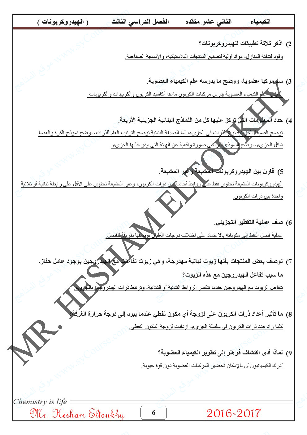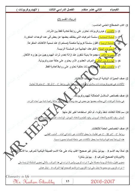 معلومات الملف: الصف الثاني عشر المتقدم, الفصل الثالث, كيمياء, الهيدروكربونات كاملة | |||