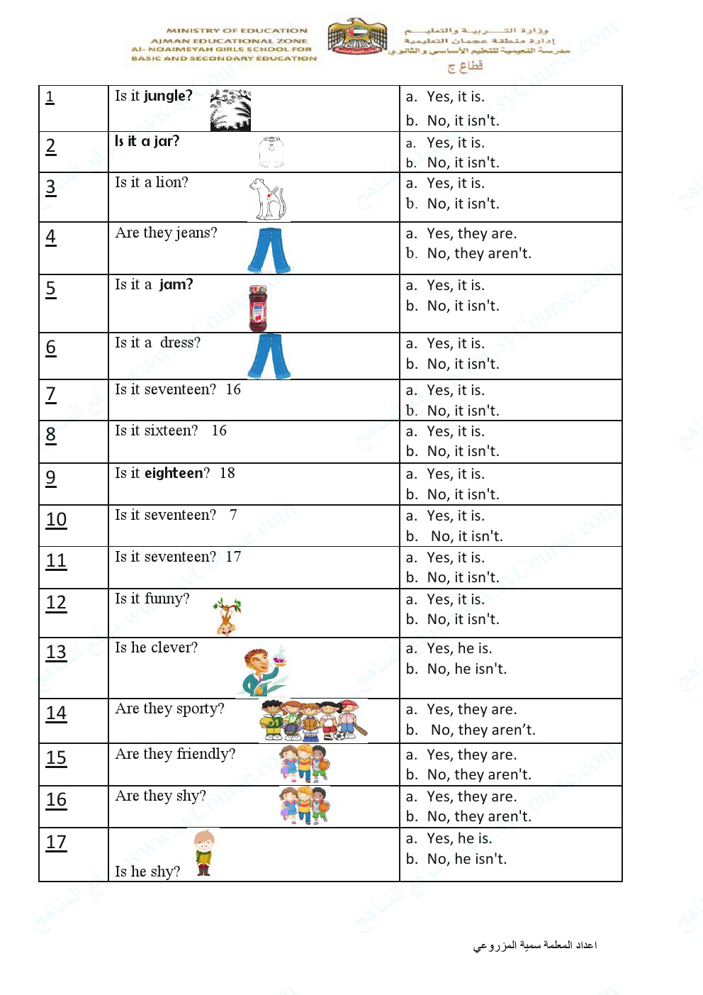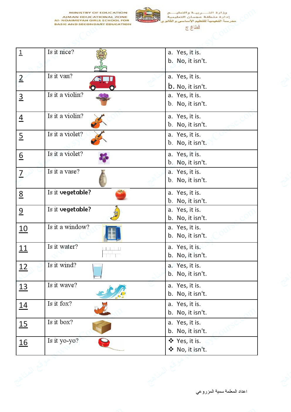أنت هنا: موقع المناهج ⇦ المناهج الإماراتية ⇦ الصف الأول ⇦ لغة انجليزية ⇦ الفصل الثالث ⇦ أوراق عمل |