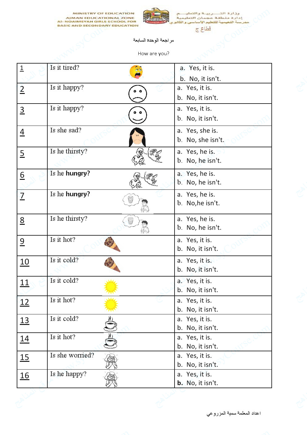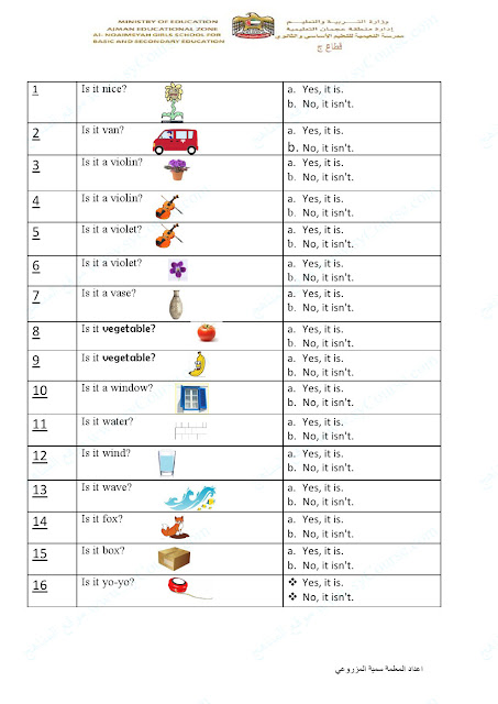معلومات الملف: الصف الأول, الفصل الثالث, لغة انكليزية, أوراق عمل الوحدة السابعة. | ||