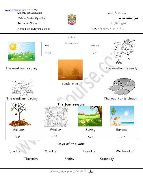 معلومات الملف: الصف الأول, الفصل الثالث, لغة انكليزية, اوراق عمل شاملة ومميزة للوحدة الثامنة. | |||