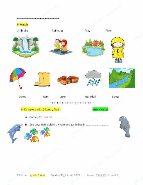 الصف الثاني, الفصل الثالث, لغة انكليزية, نموذج امتحاني |