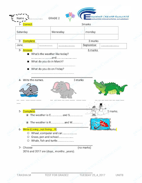 الصف الثاني, الفصل الثالث, لغة انكليزية, اختبار |