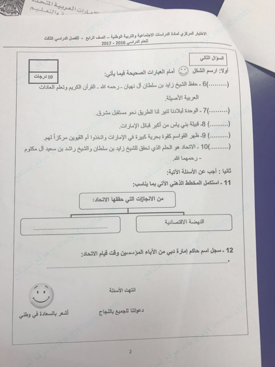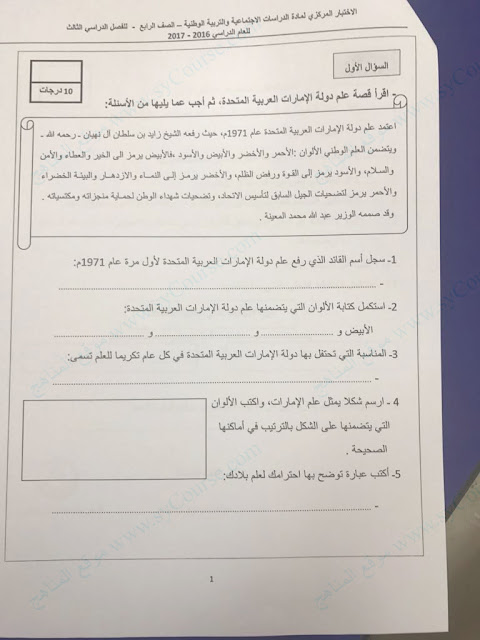 الصف الرابع, الفصل الثالث, اجتماعيات, الاختبار المركزي القصير 2017
