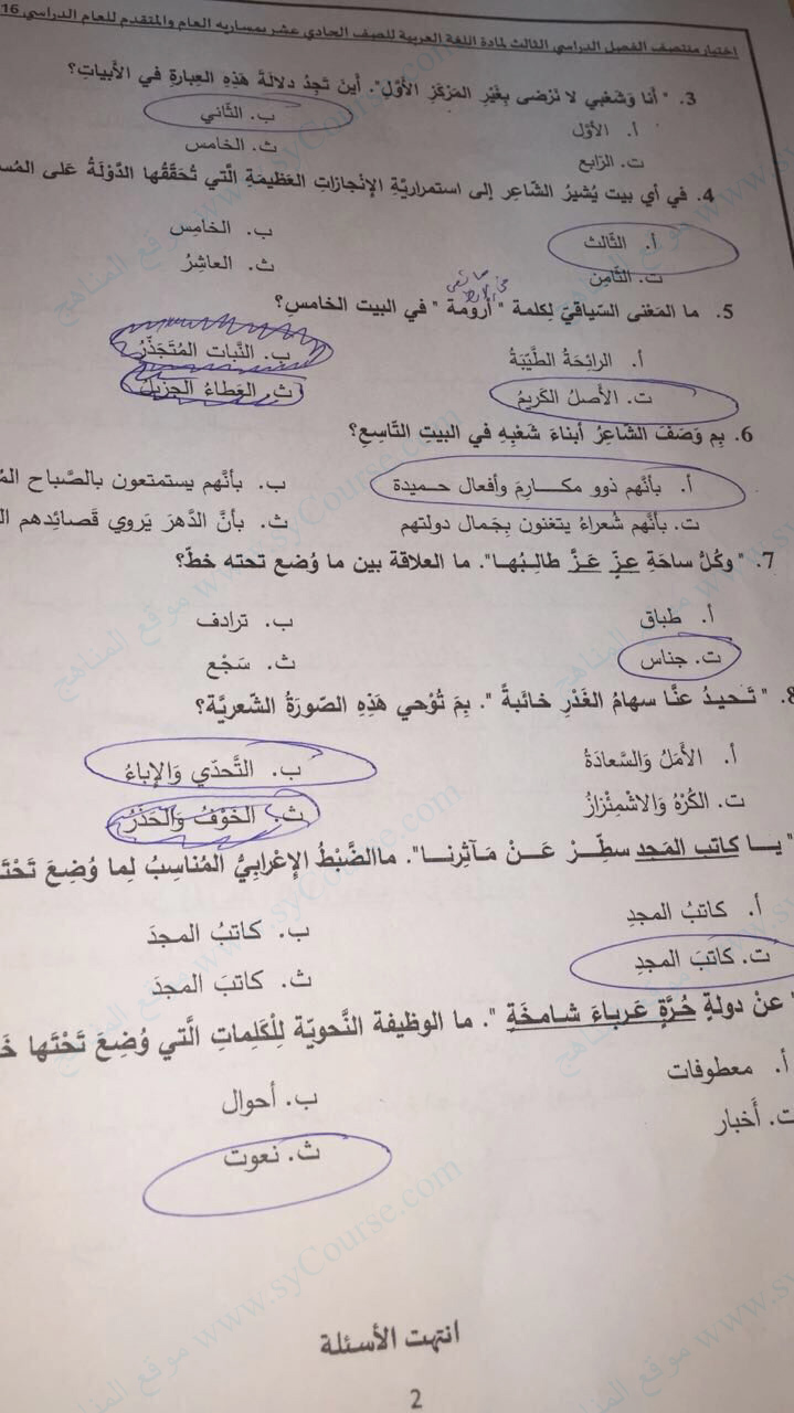 | أحدث ملفات الصف الحادي عشر, المناهج, الفصل الثالث |