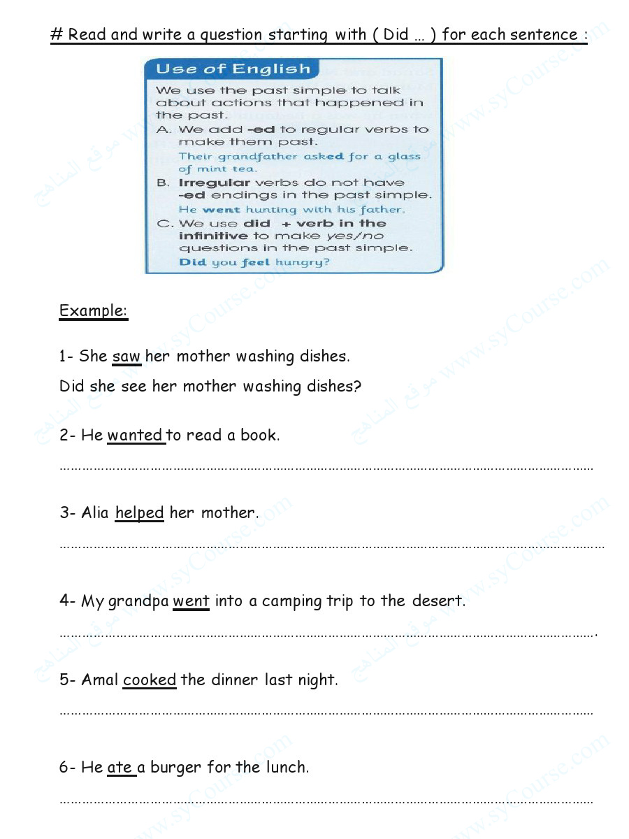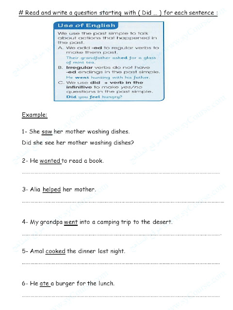 الصف الرابع, الفصل الثالث, لغة انكليزية, تدريبات على الوحدة العاشر | ||
