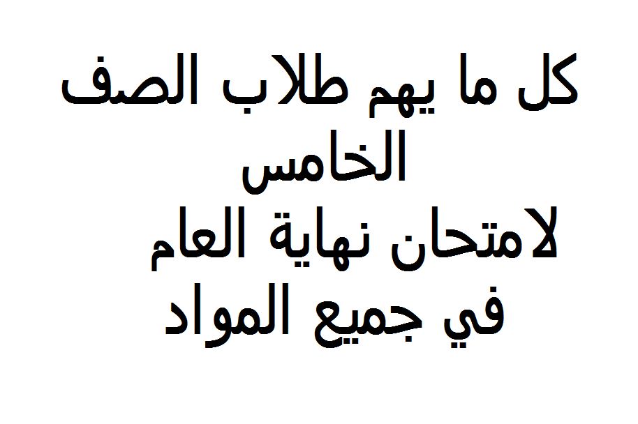 كل ما يهم طلاب الصف الخامس لامتحان نهاية العام في جميع المواد | ||