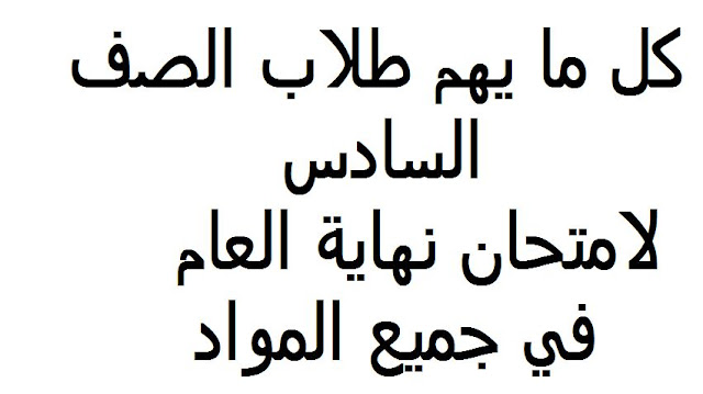 | كل ما يهم طلاب الصف السادس لامتحان نهاية العام في جميع المواد | ||