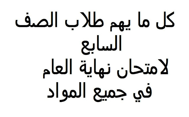| كل ما يهم طلاب الصف السابع لامتحان نهاية العام في جميع المواد | ||