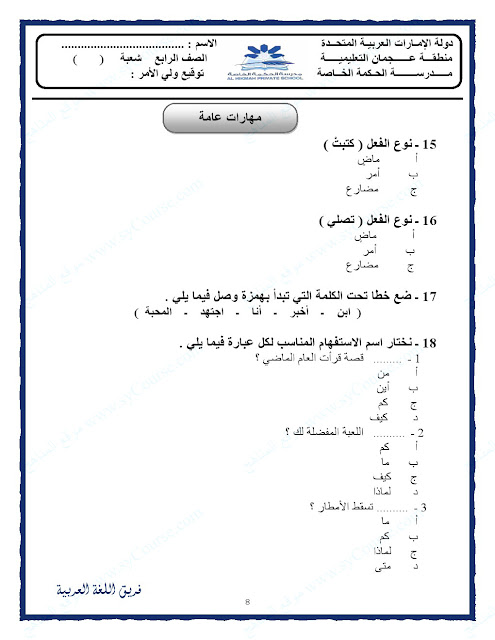 | المادة: لغة عربية | ||