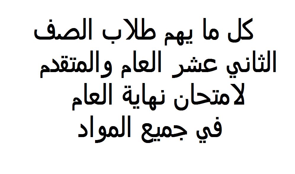 معلومات الملف: كل ما يهم طلاب الصف الثاني عشر العام والمتقدم لامتحان نهاية العام في جميع المواد | ||