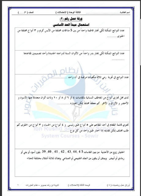 | القسم: أوراق عمل | ||