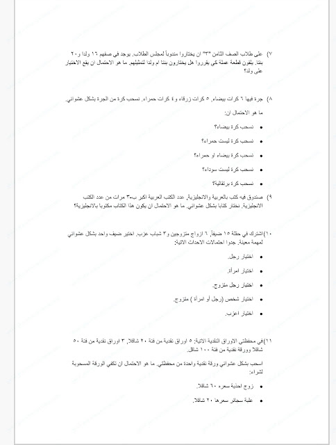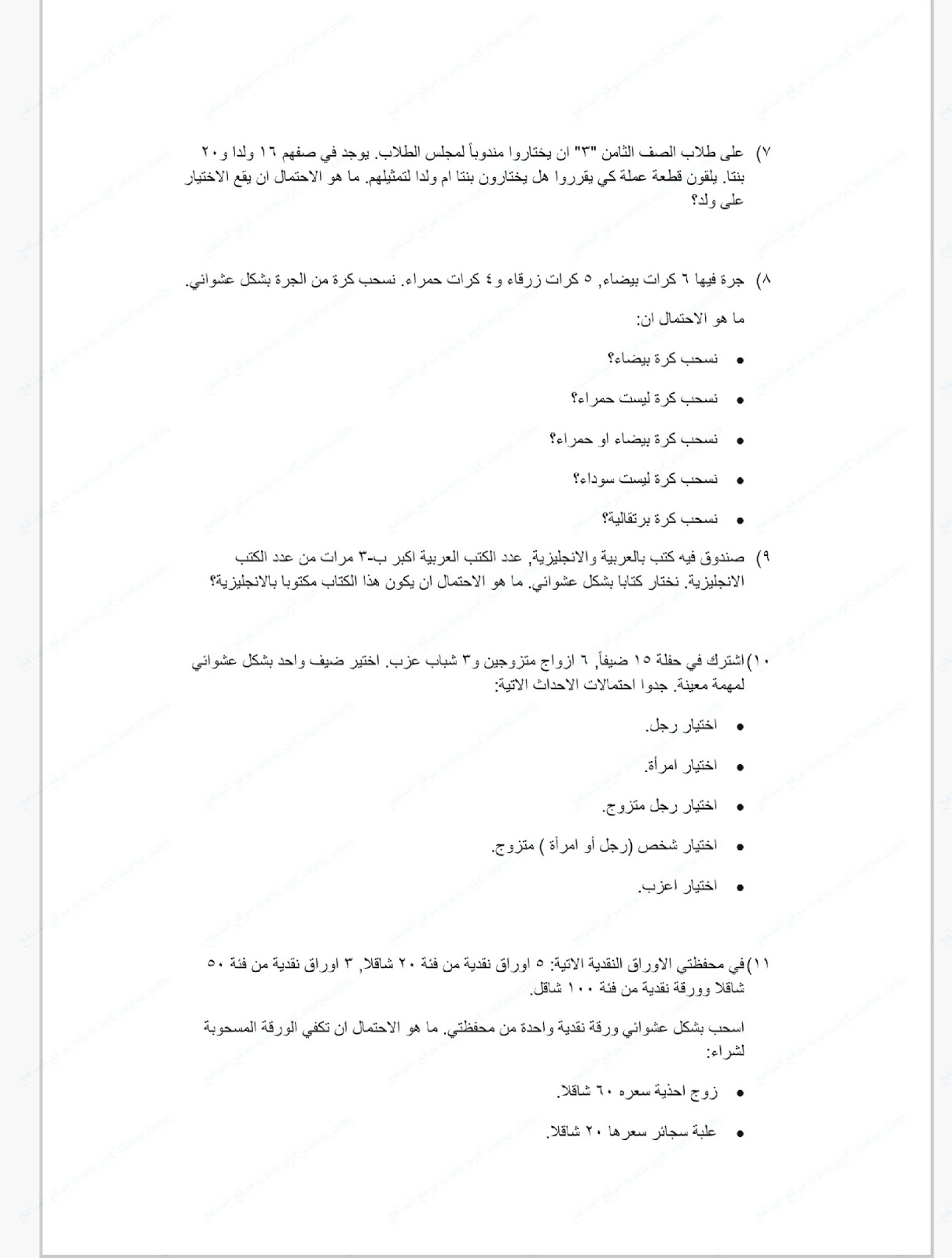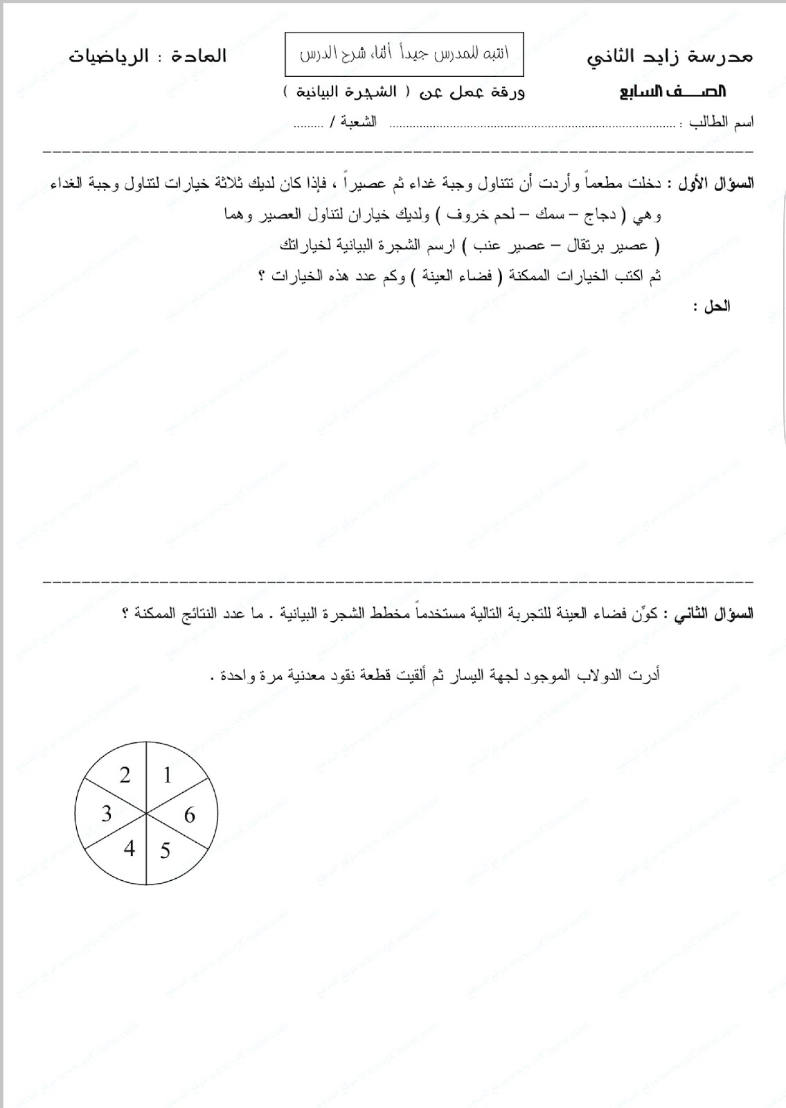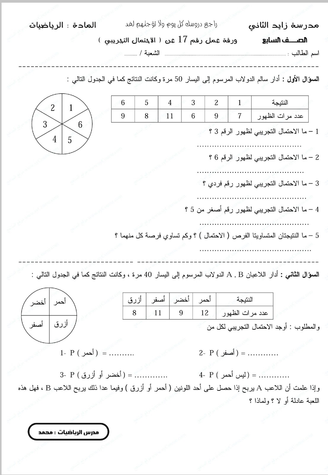 الصف السابع, الفصل الثالث, رياضيات, أوراق عمل شاملة لرؤية الصورة بالحجم الكامل اضغط عليها | ||