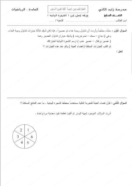 | أنت هنا: موقع المناهج ⇦ المناهج الإماراتية ⇦ الصف السابع ⇦ رياضيات ⇦ الفصل الثالث ⇦ أوراق عمل |