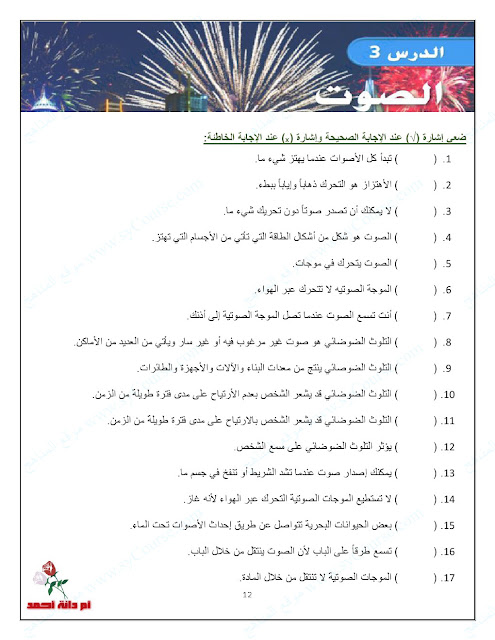 معلومات الملف: الصف الثالث, الفصل الثالث, علوم, امتحان تجريبي في الوحدة 11 | ||