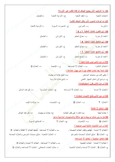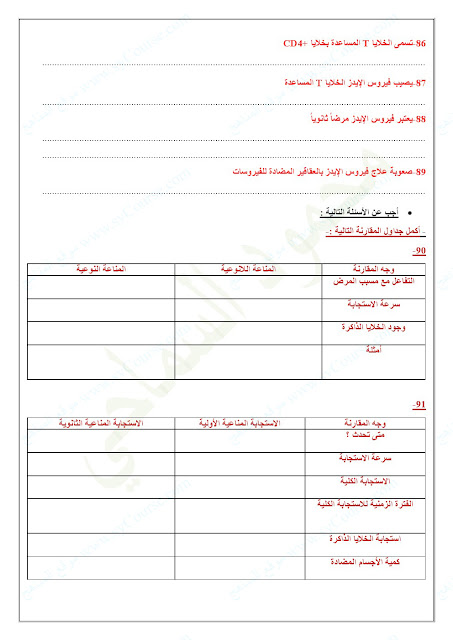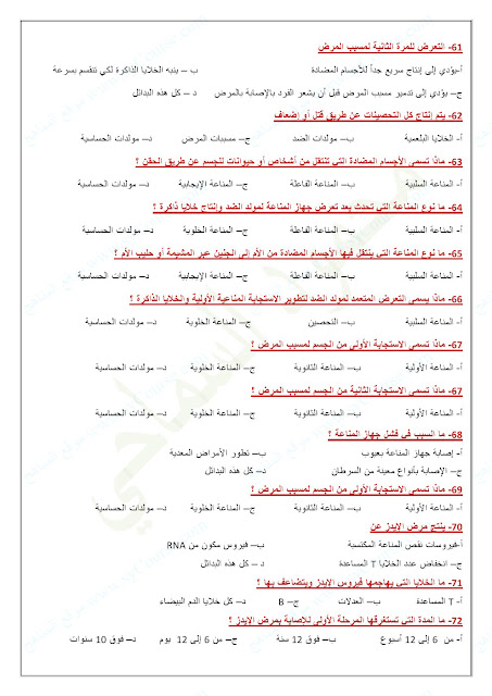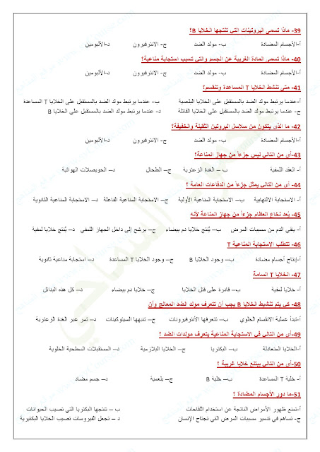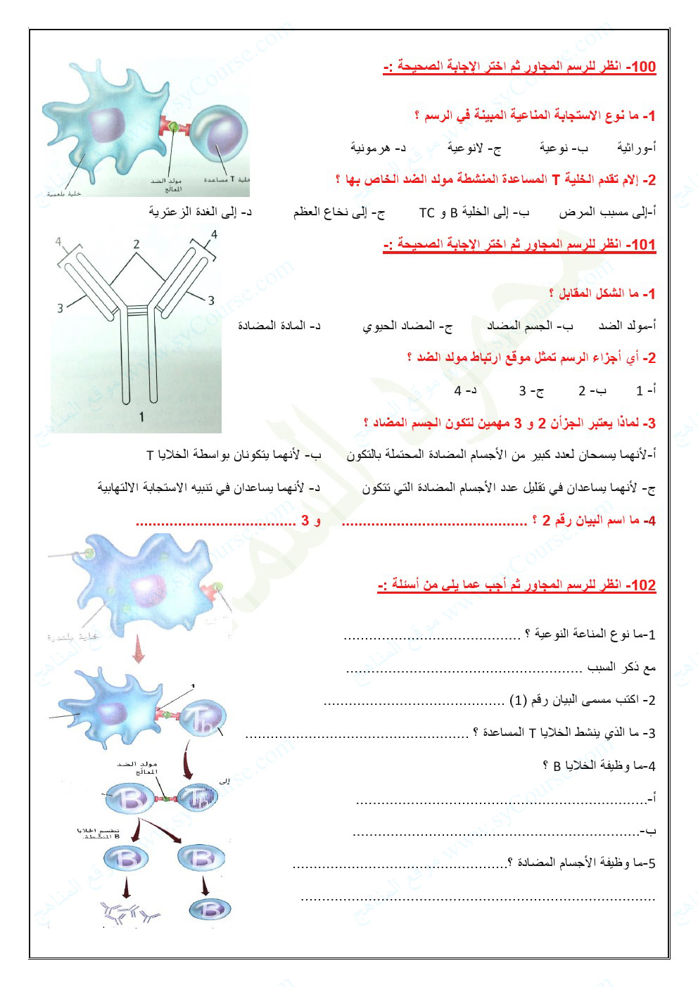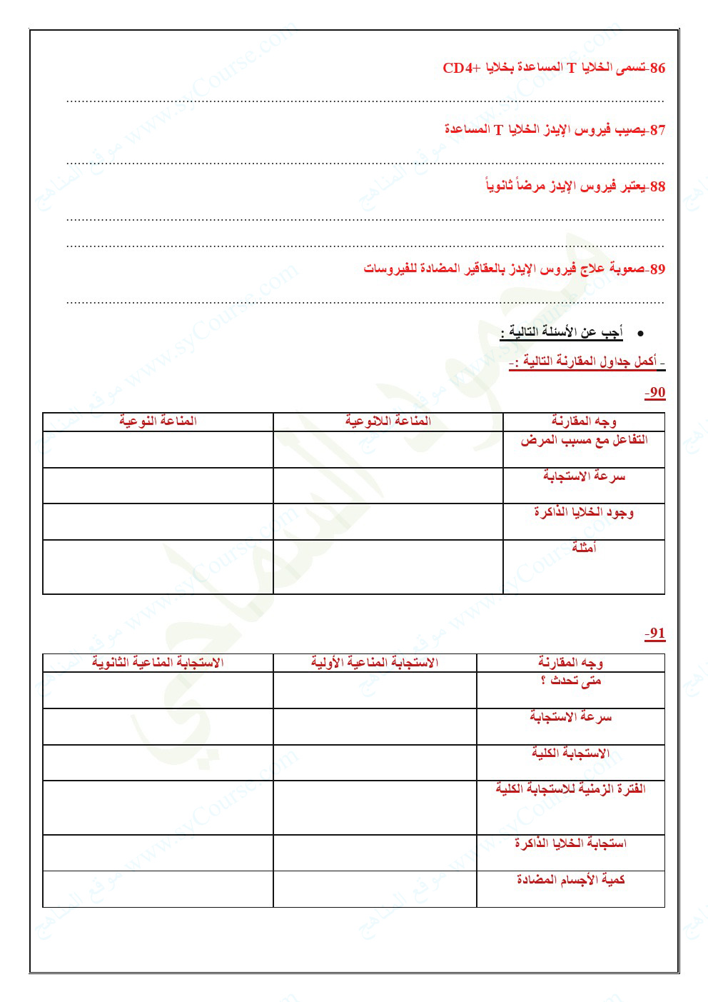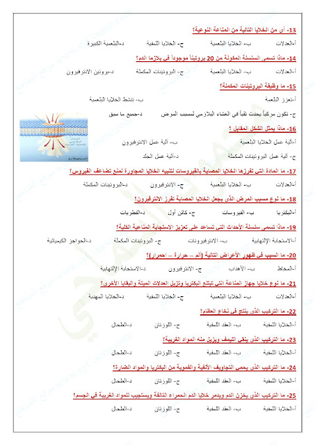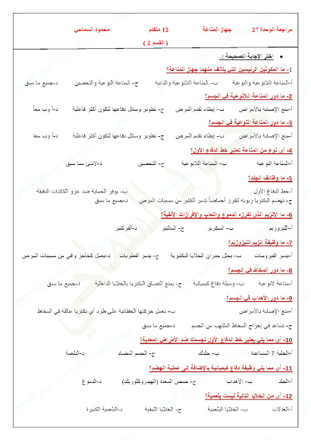 أحياء جميع أسئلة وحدة (جهاز المناعة) مع أسئلة هامة جداً. | ||