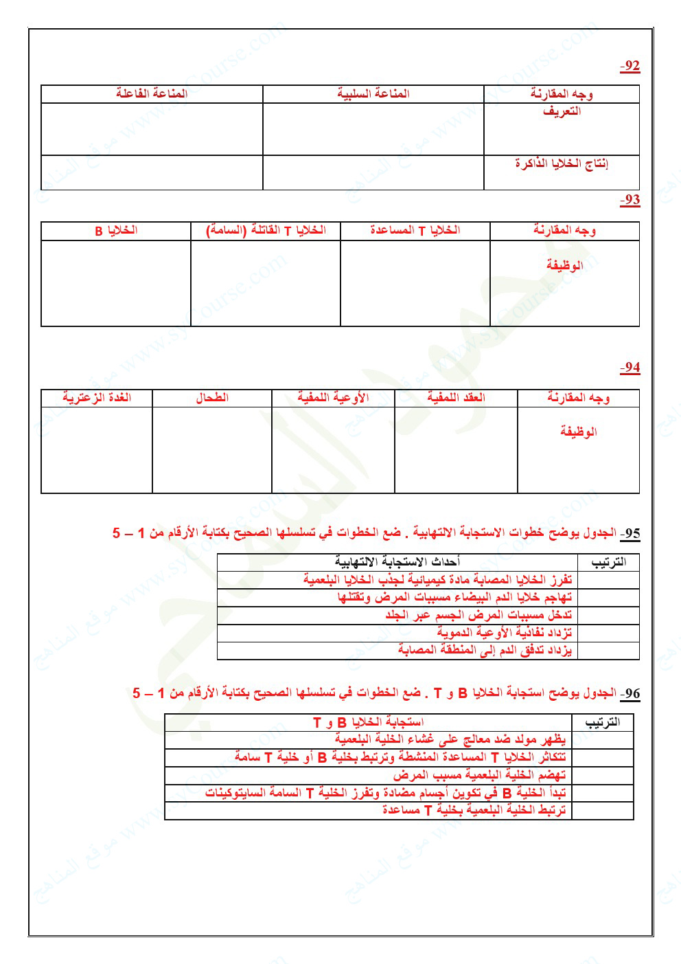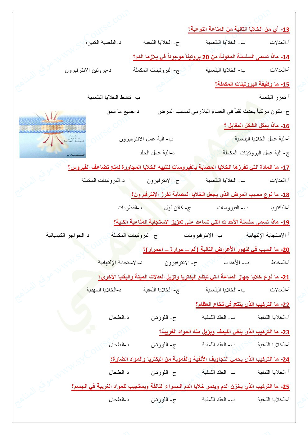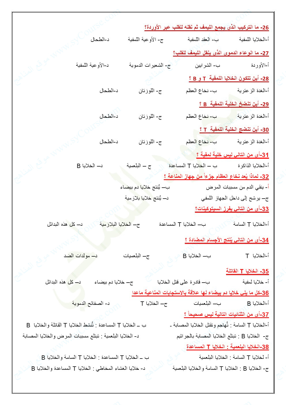 أحياء جميع أسئلة وحدة (جهاز المناعة) مع أسئلة هامة جداً. | ||