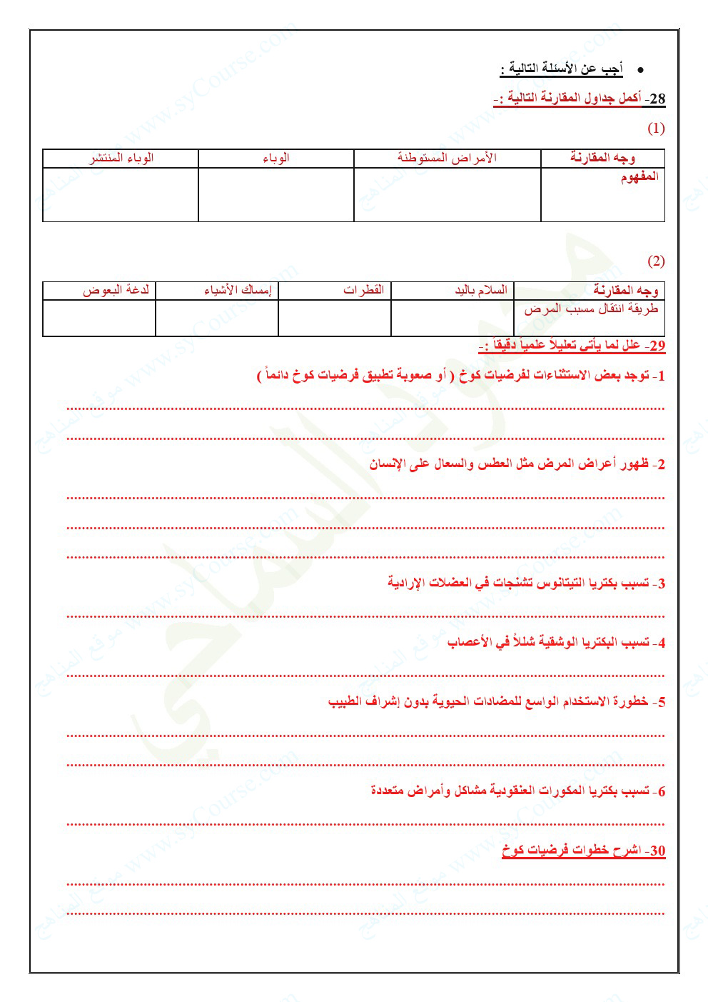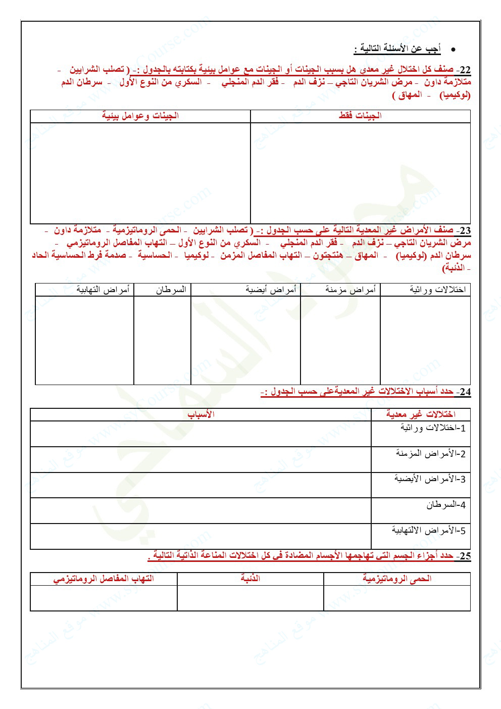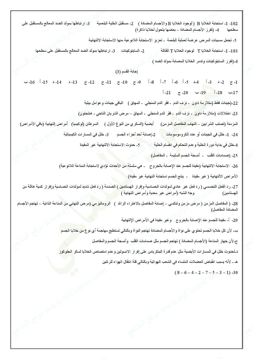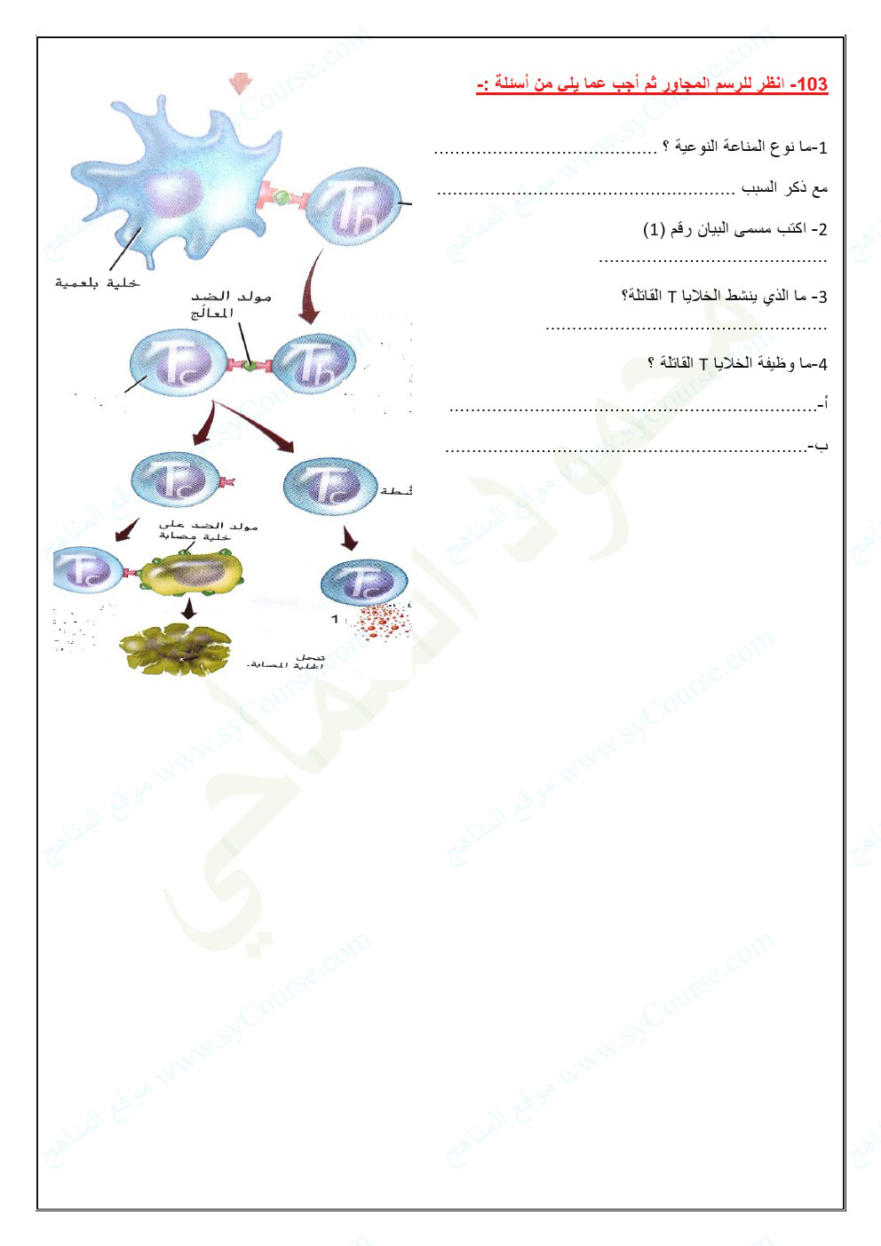 أحياء جميع أسئلة وحدة (جهاز المناعة) مع أسئلة هامة جداً. | ||